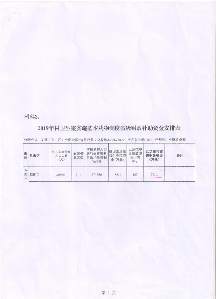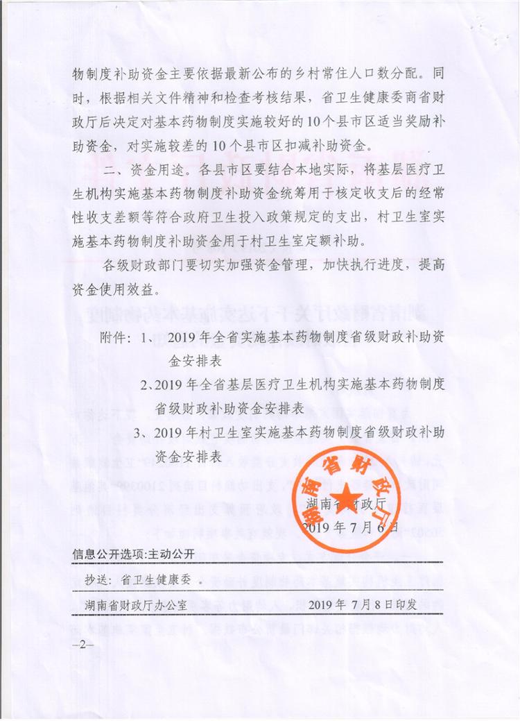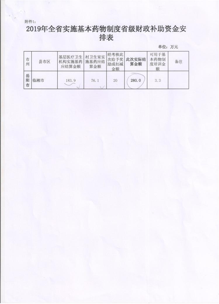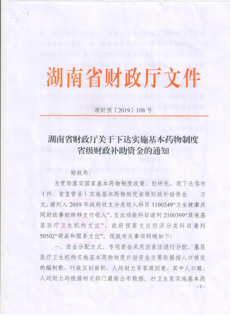 湖南省财政厅关于下达实施基本药物制度省级财政补助资金的通知
