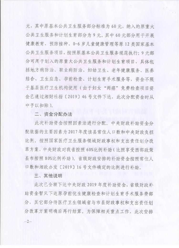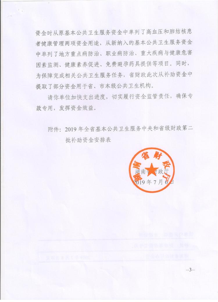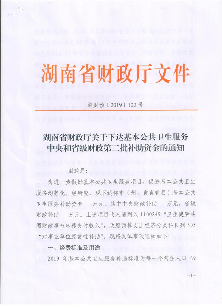 湖南省财政厅关于下达基本公共卫生服务中央和省级财政第二批补助资金的通知