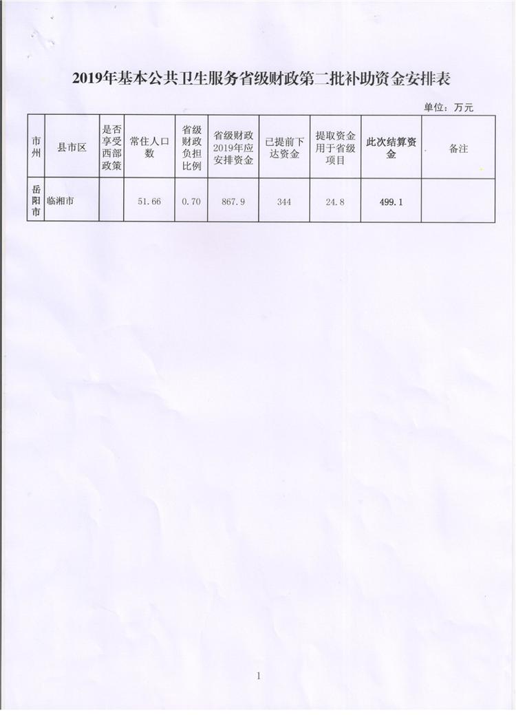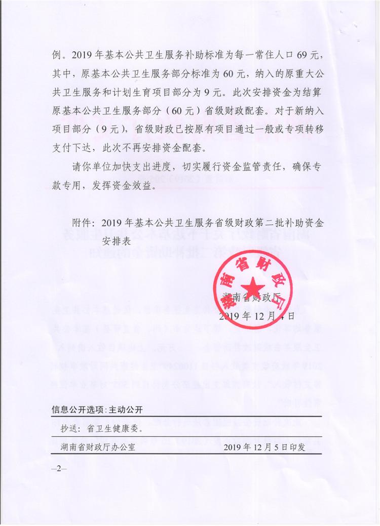 湖南省财政厅关于下达基本卫生服务省级财政第二批补助资金的通知