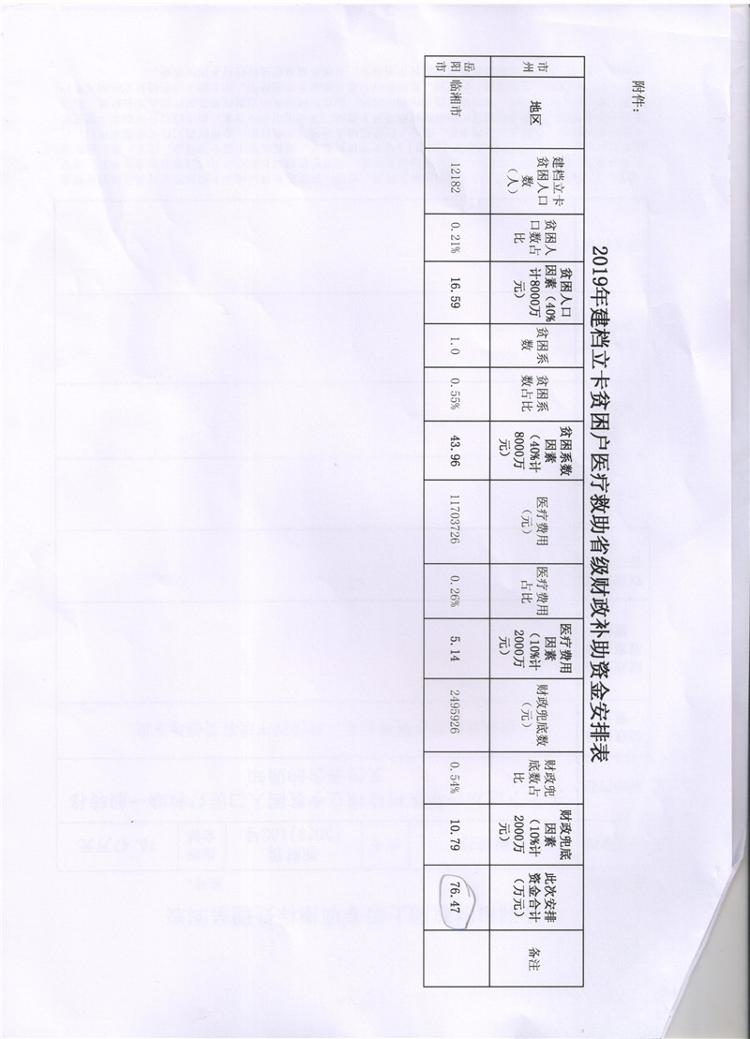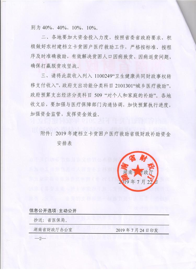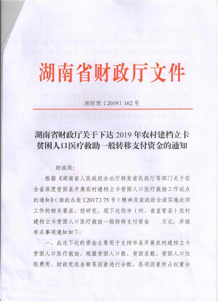 湖南省财政厅关于下达2019年农村建档立卡贫困人口医疗救助一般转移支付资金的通知