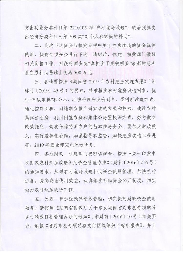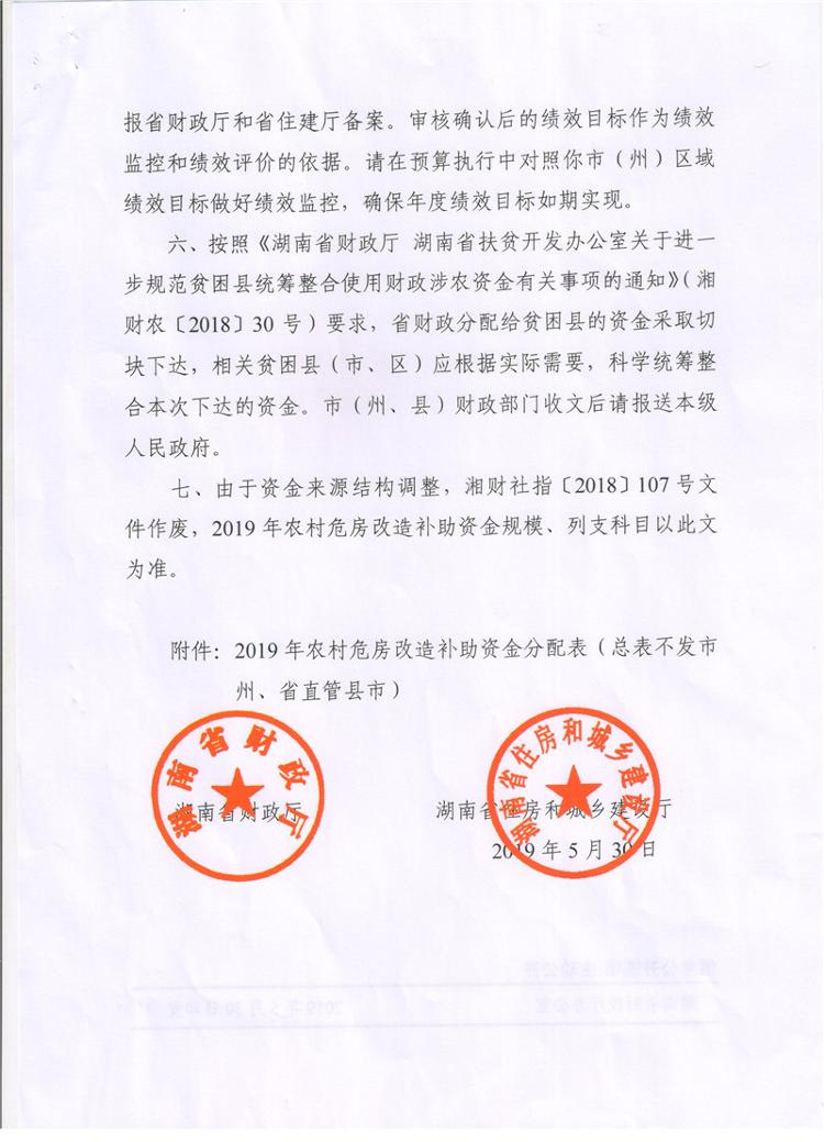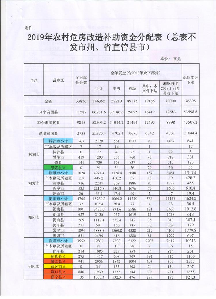 湖南省财政厅湖南省住房和城乡建设厅关于下达2019年农村危房改造补助资金的通知