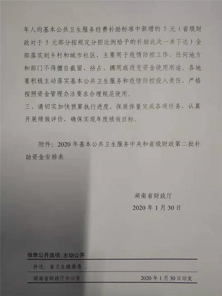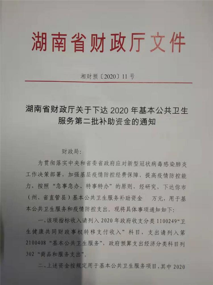 湖南省财政厅关于下达2020年基本公共卫生服务第二批补助资金的通知