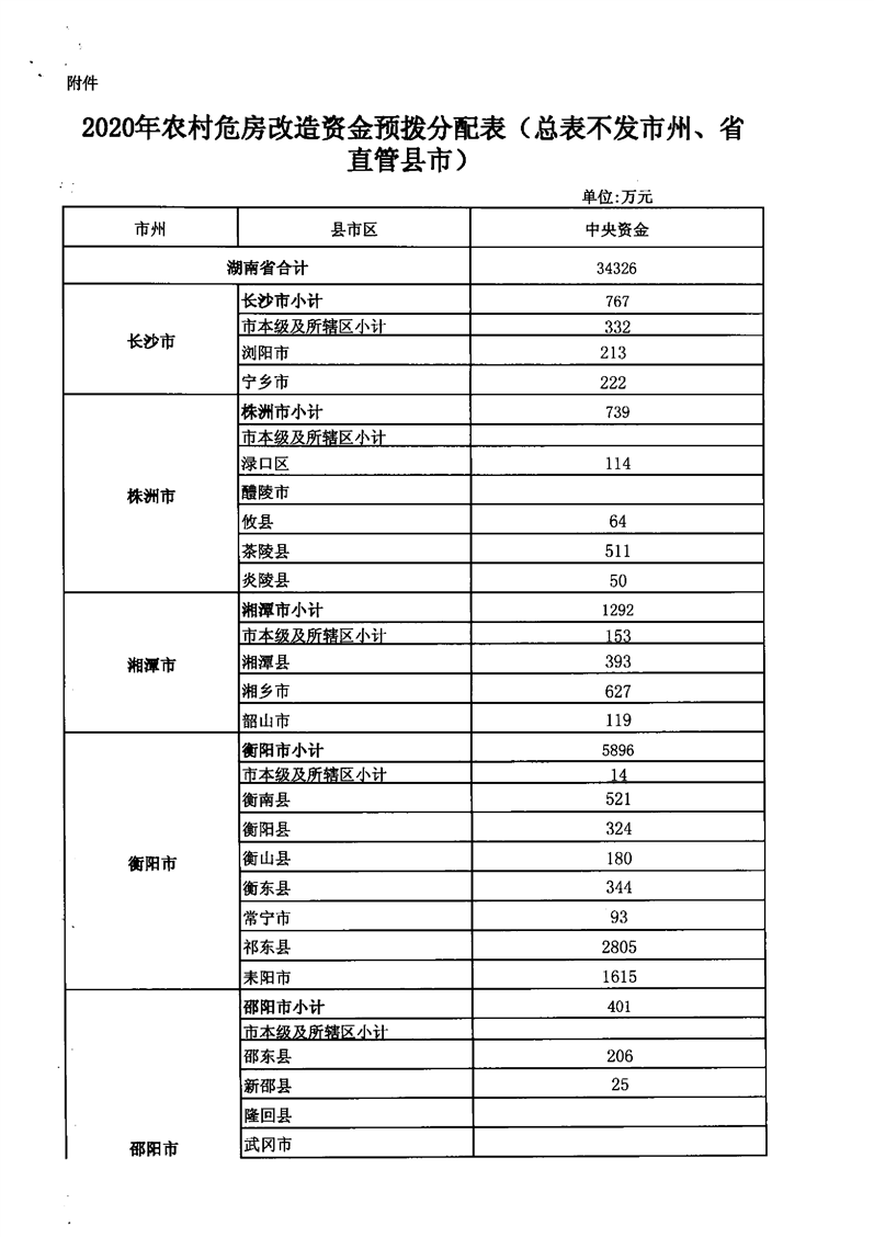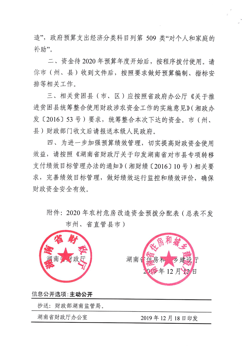 湖南省财政厅湖南省住房和城乡建设厅关于提前下达2020年农村危房改造补助资金预算的通知
