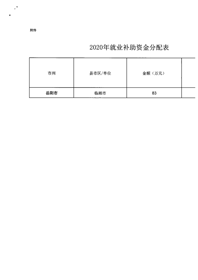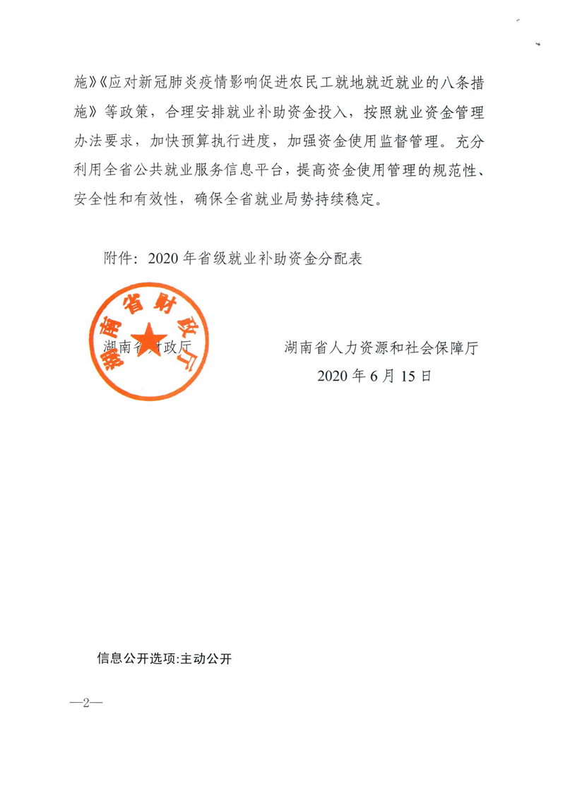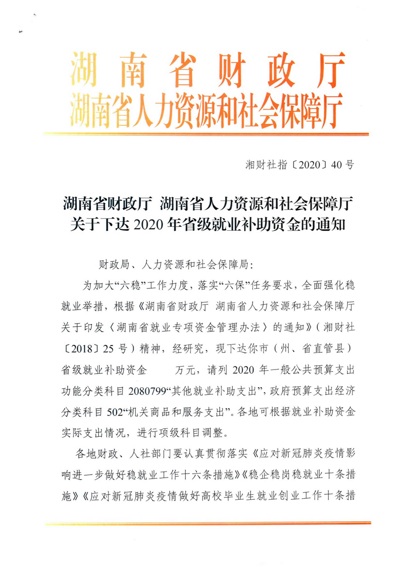 湖南省财政厅 湖南省人力资源和社会保障厅关于下达2020年省级就业补助资金的通知