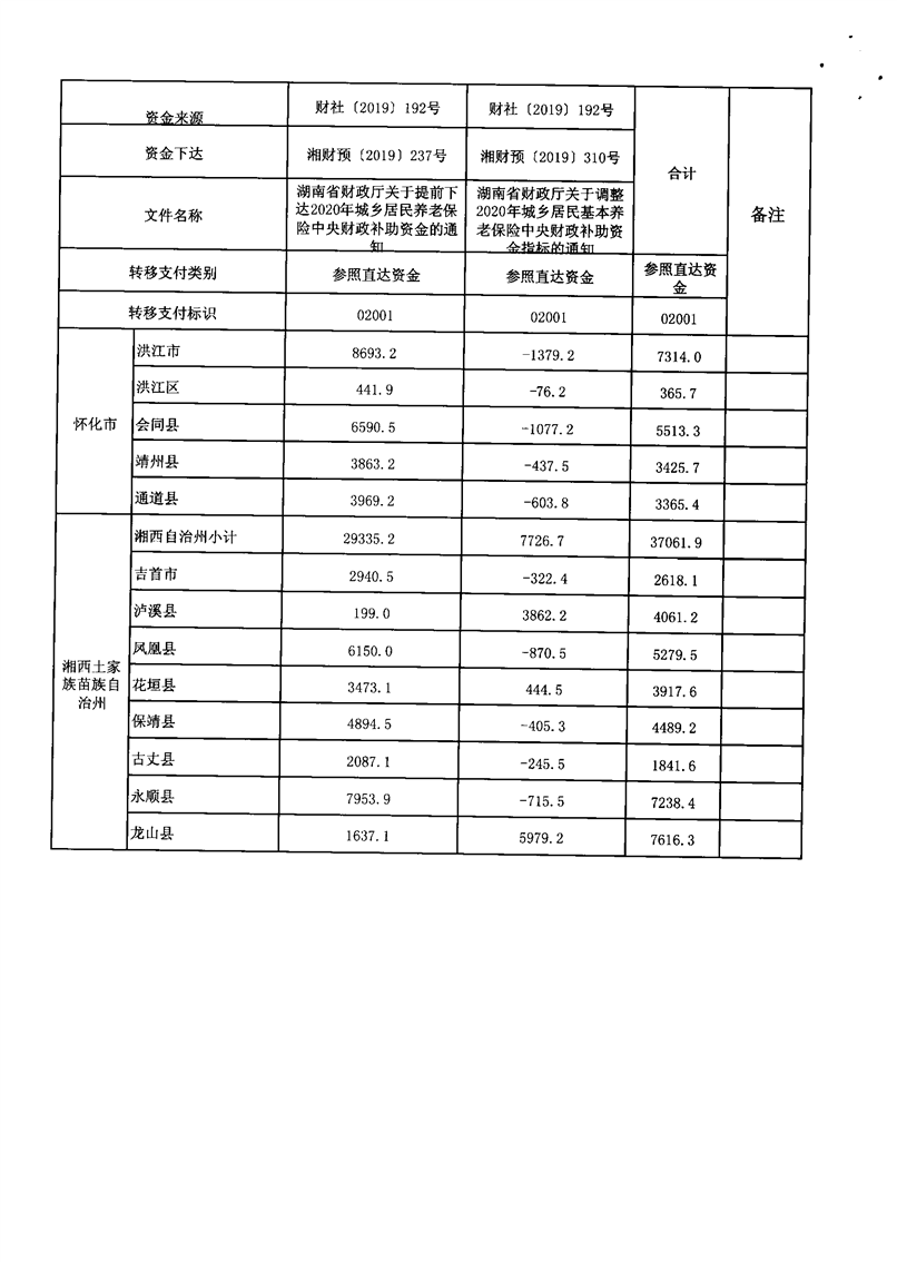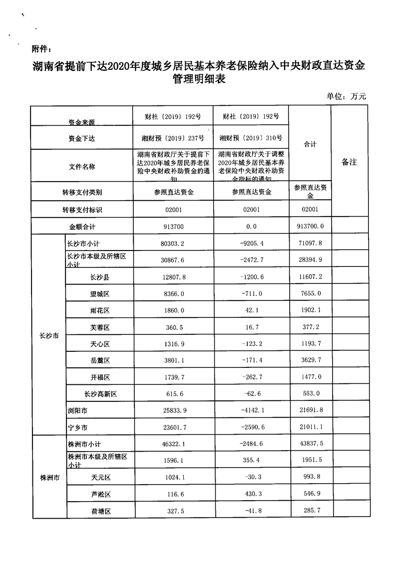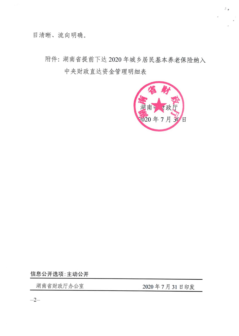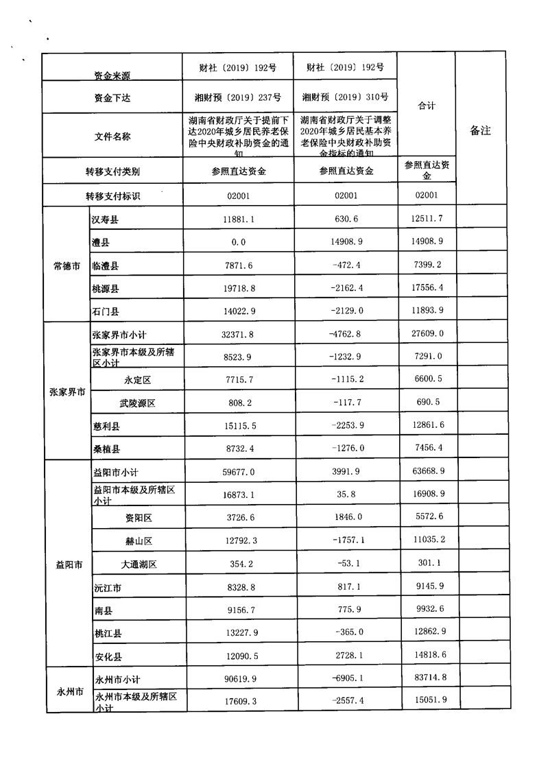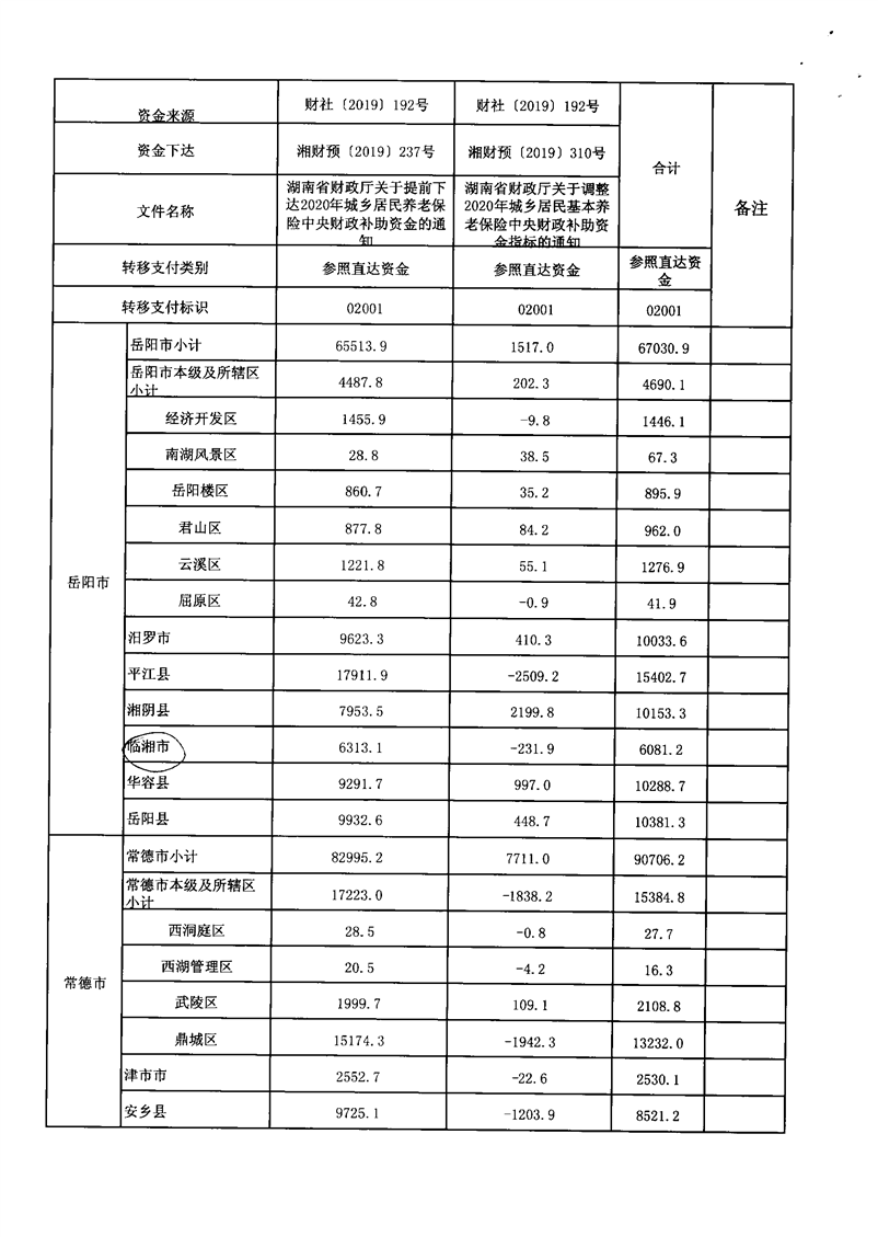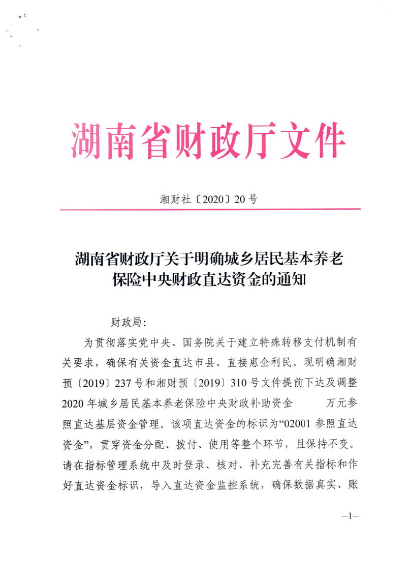 湖南省财政厅关于明确城乡居民基本养老保险中央财政直达资金的通知