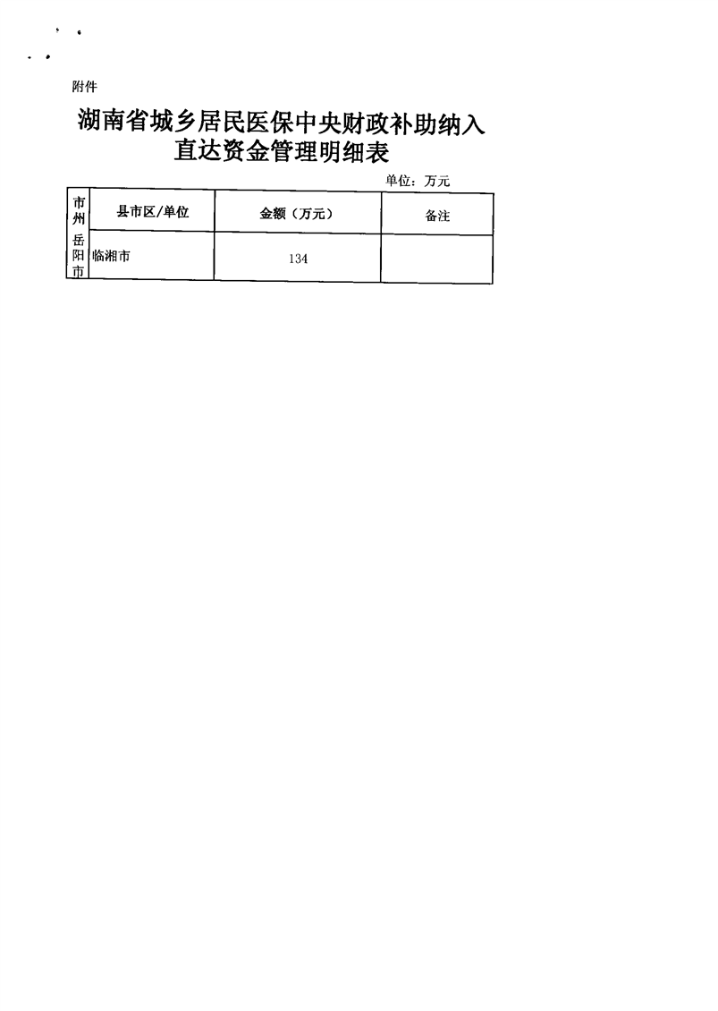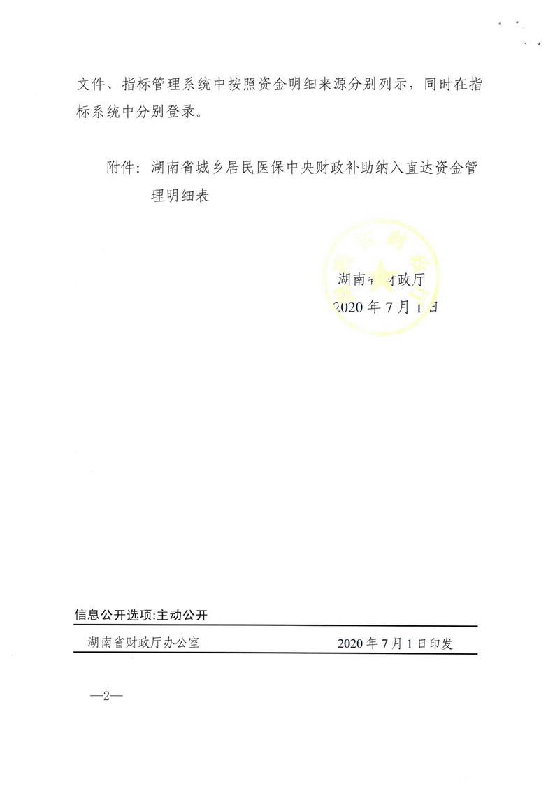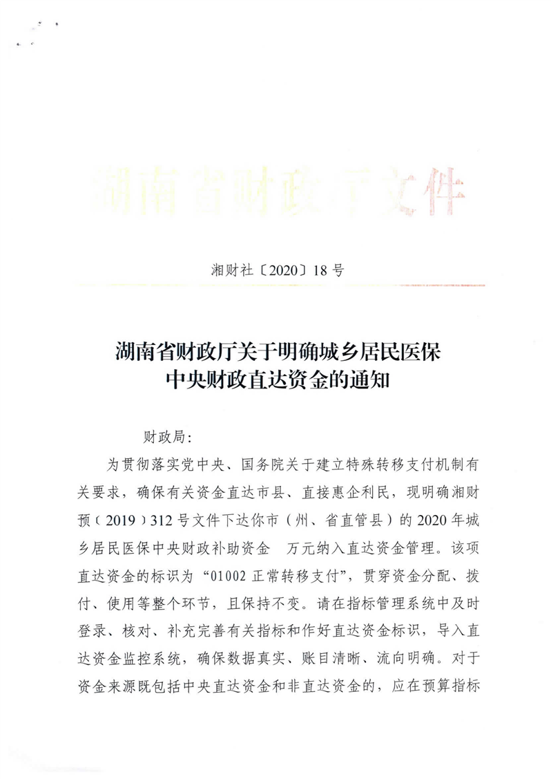 湖南省财政厅关于明确城乡居民医保中央财政直达资金的通知