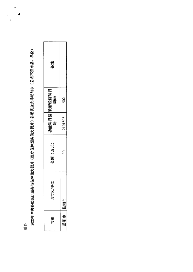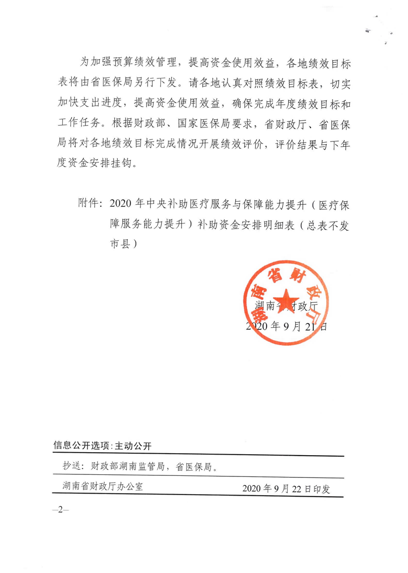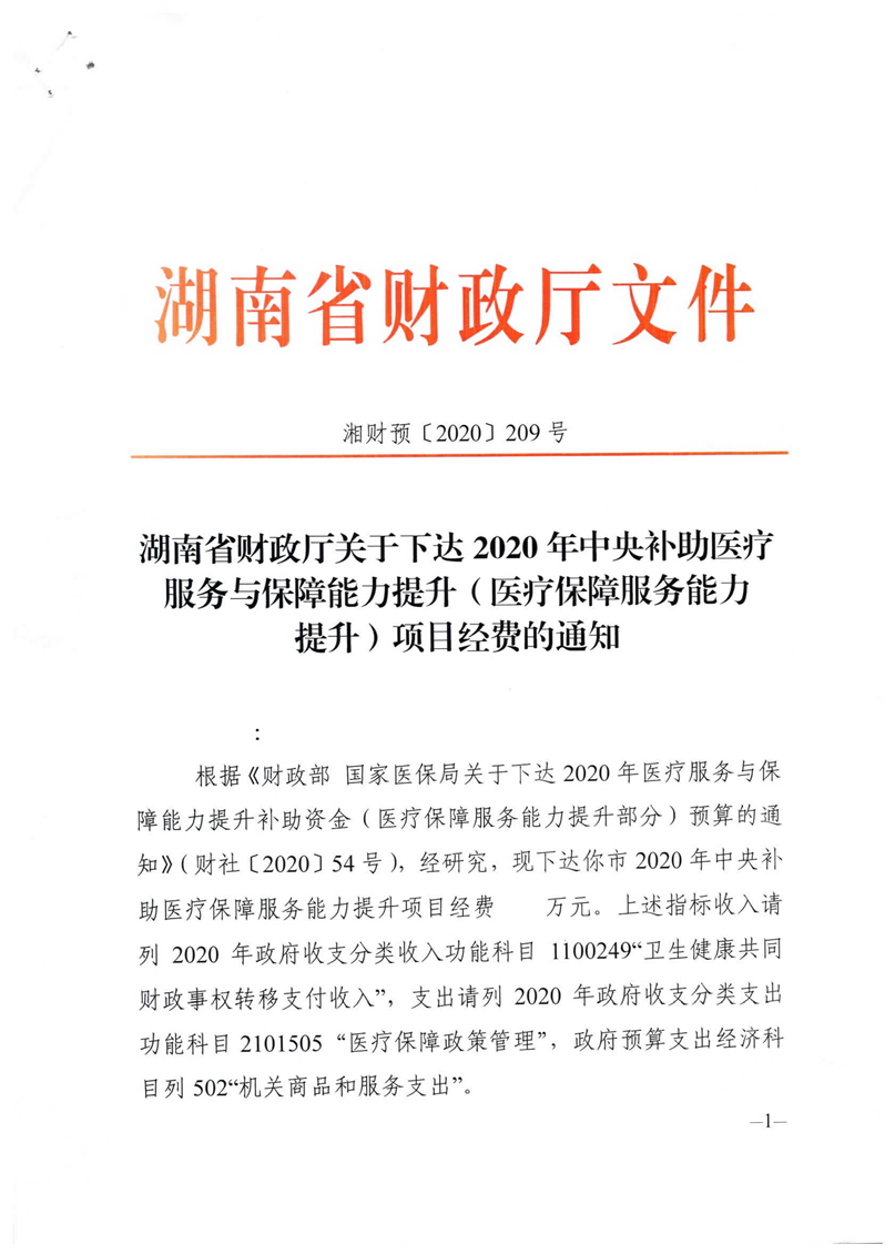湖南省财政厅关于下达2020年中央补助医疗服务与保障能力提升(医疗保障服务能力提升)项目经费的通知