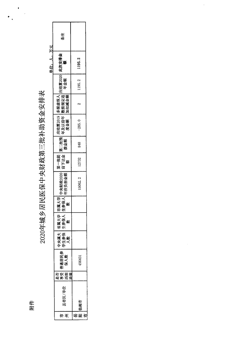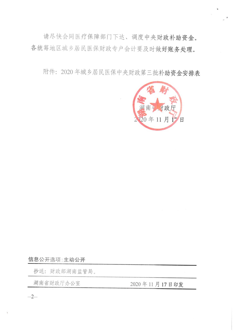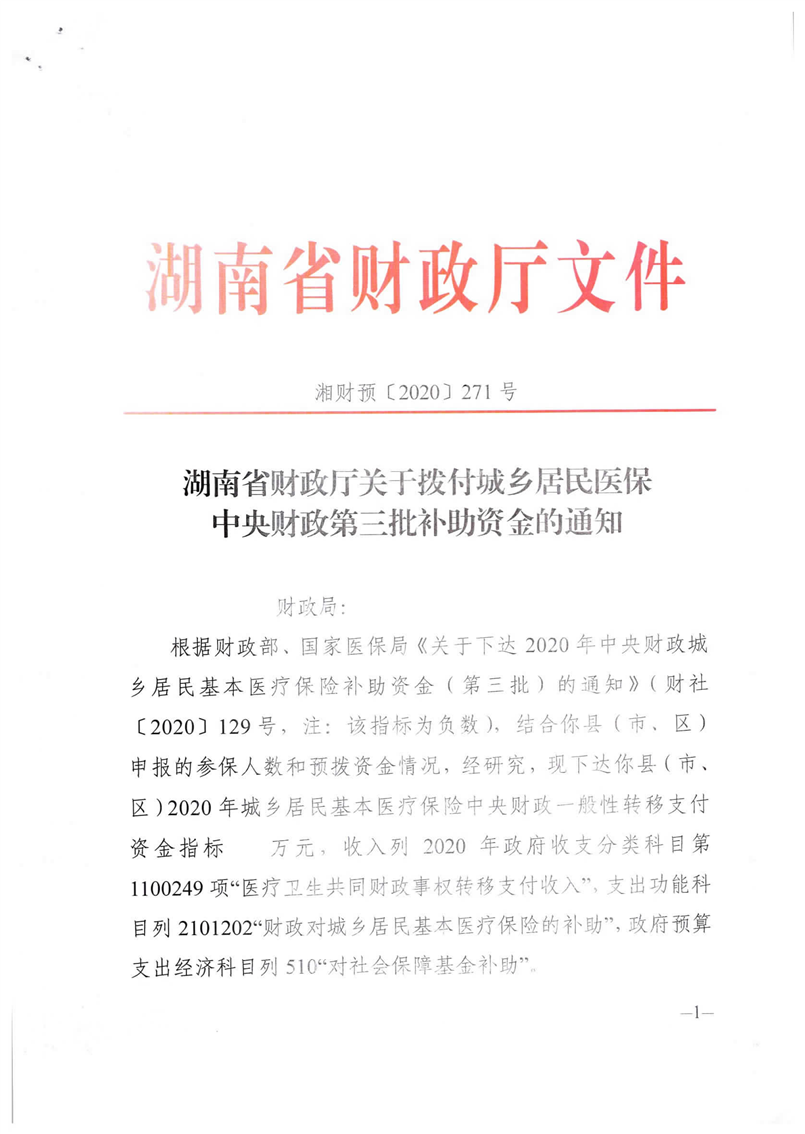 湖南省财政厅关于拨付城乡居民医保中央财政第三批补助资金的通知