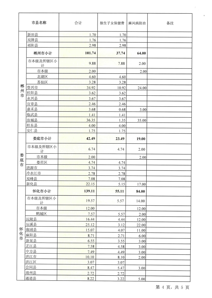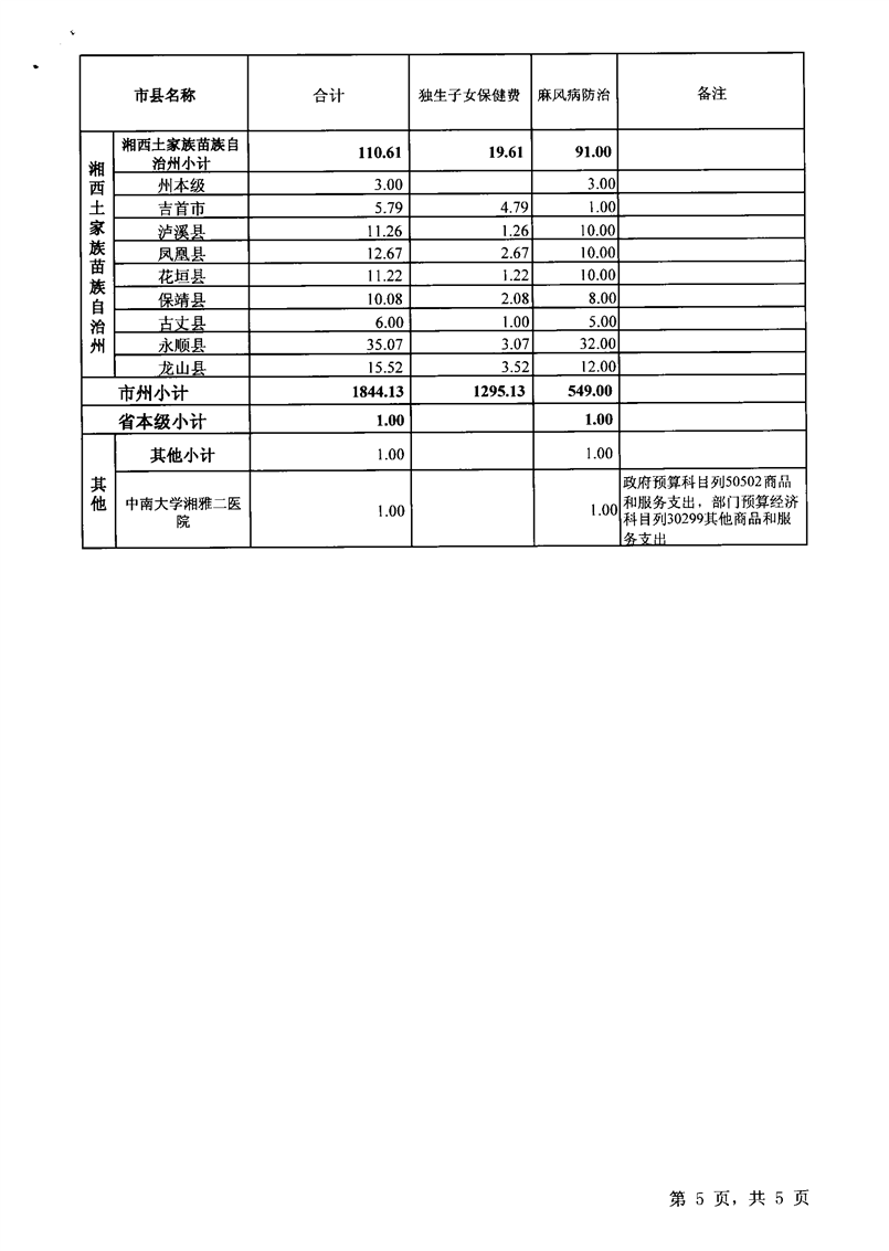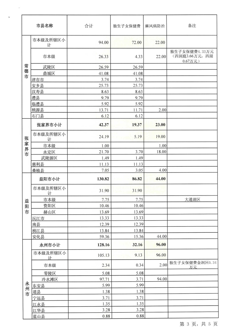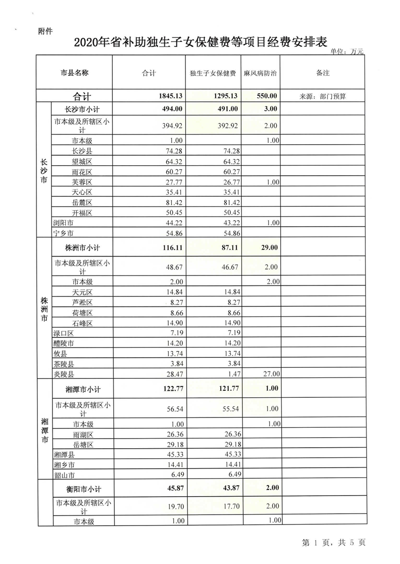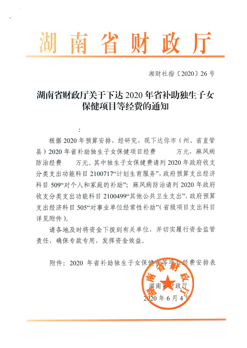 湖南省财政厅关于下达2020年省补助独生子女保建项目等经费的通知