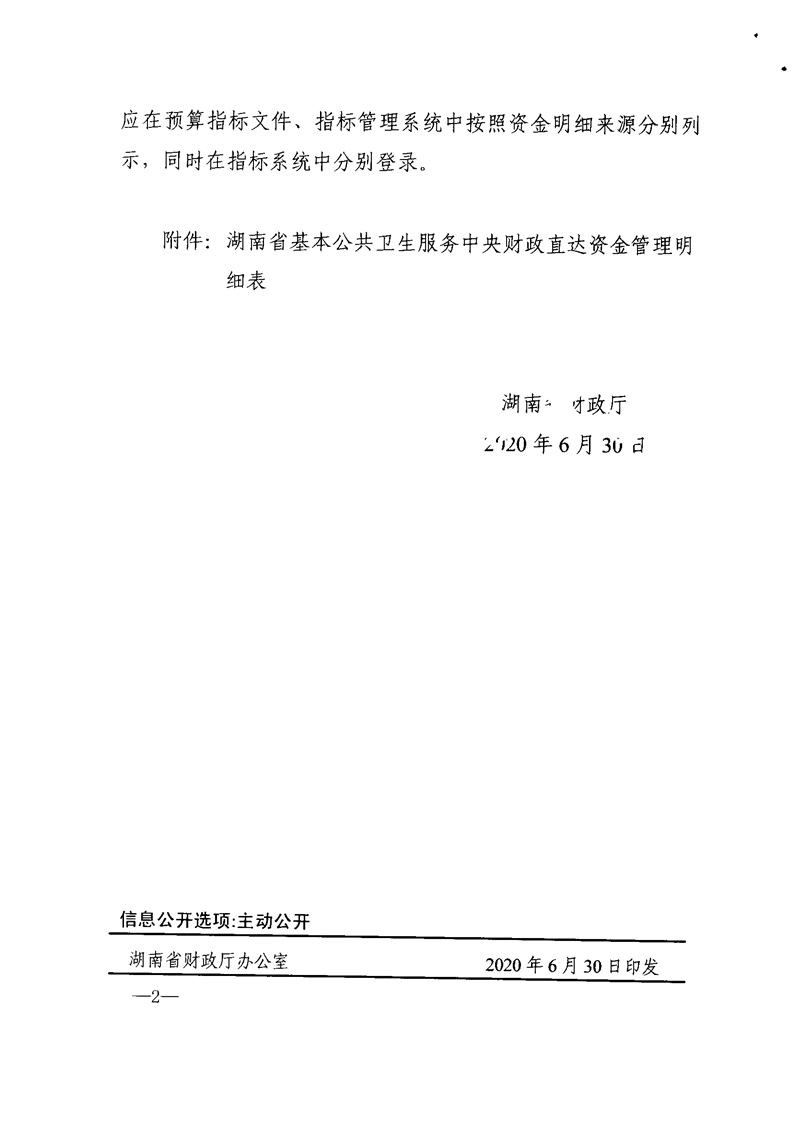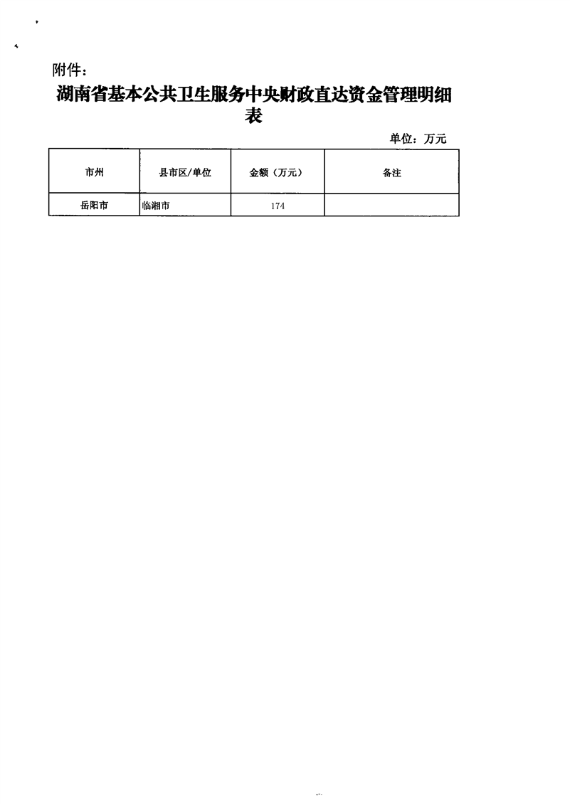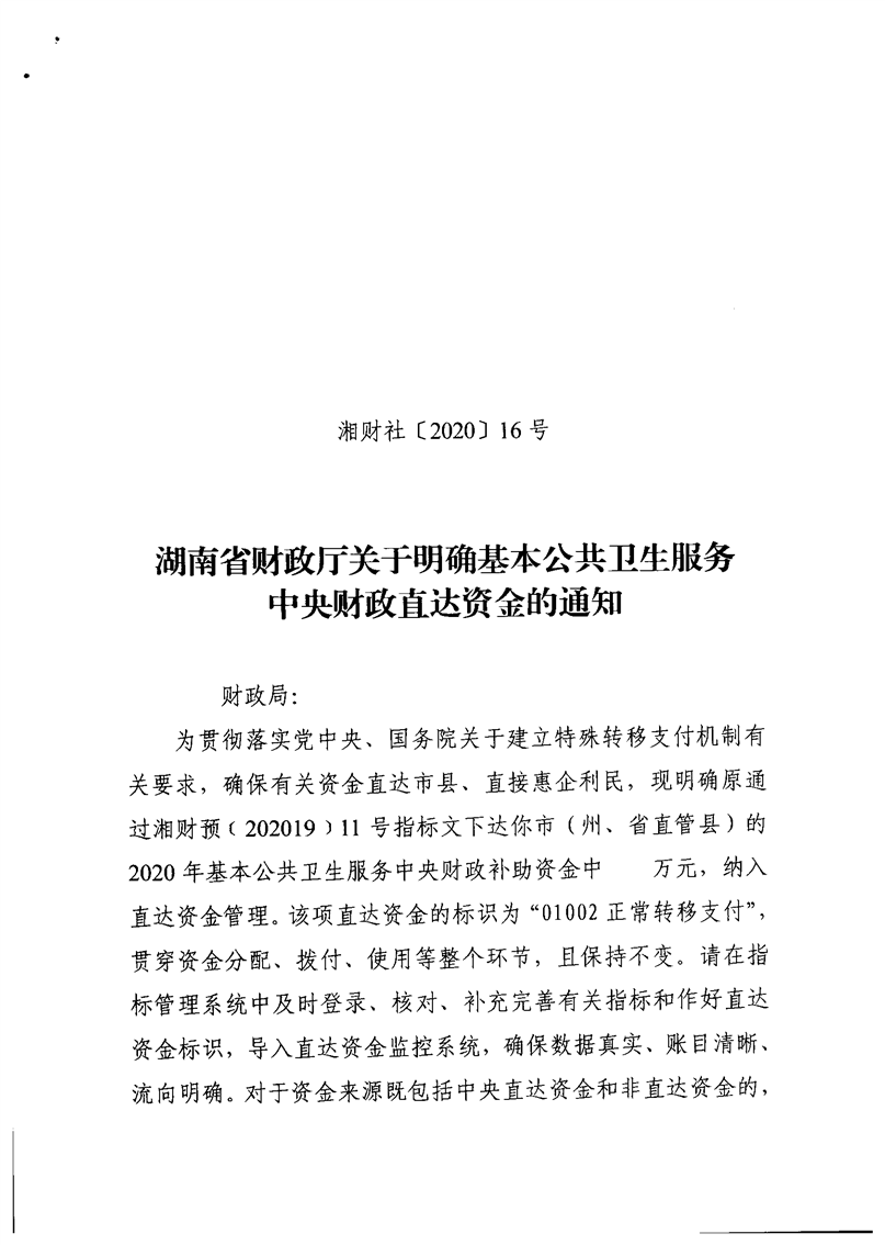 湖南省财政厅关于明确基本公共卫生服务中央财政直达资金的通知