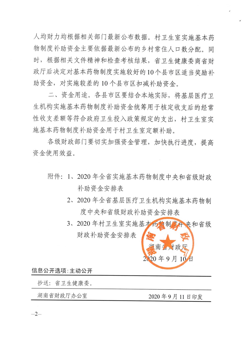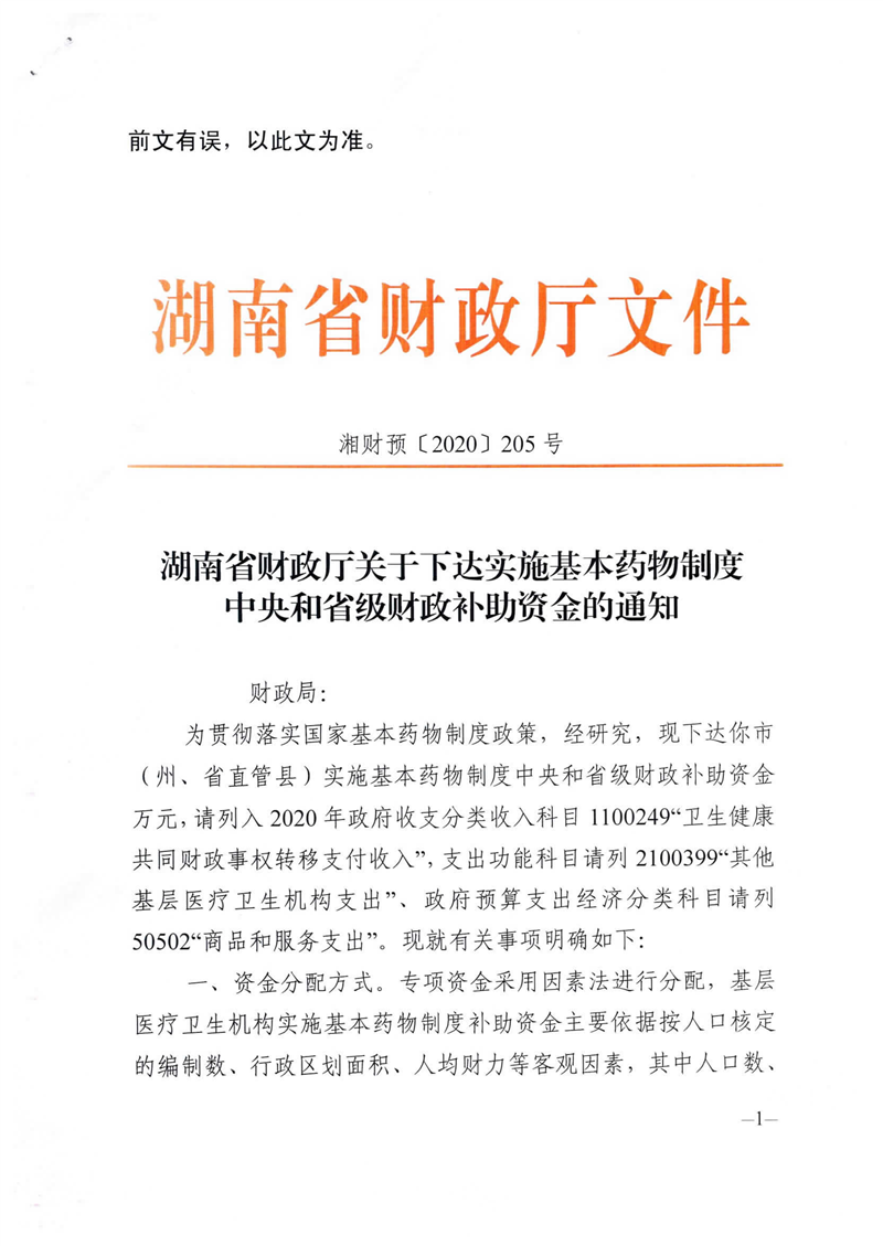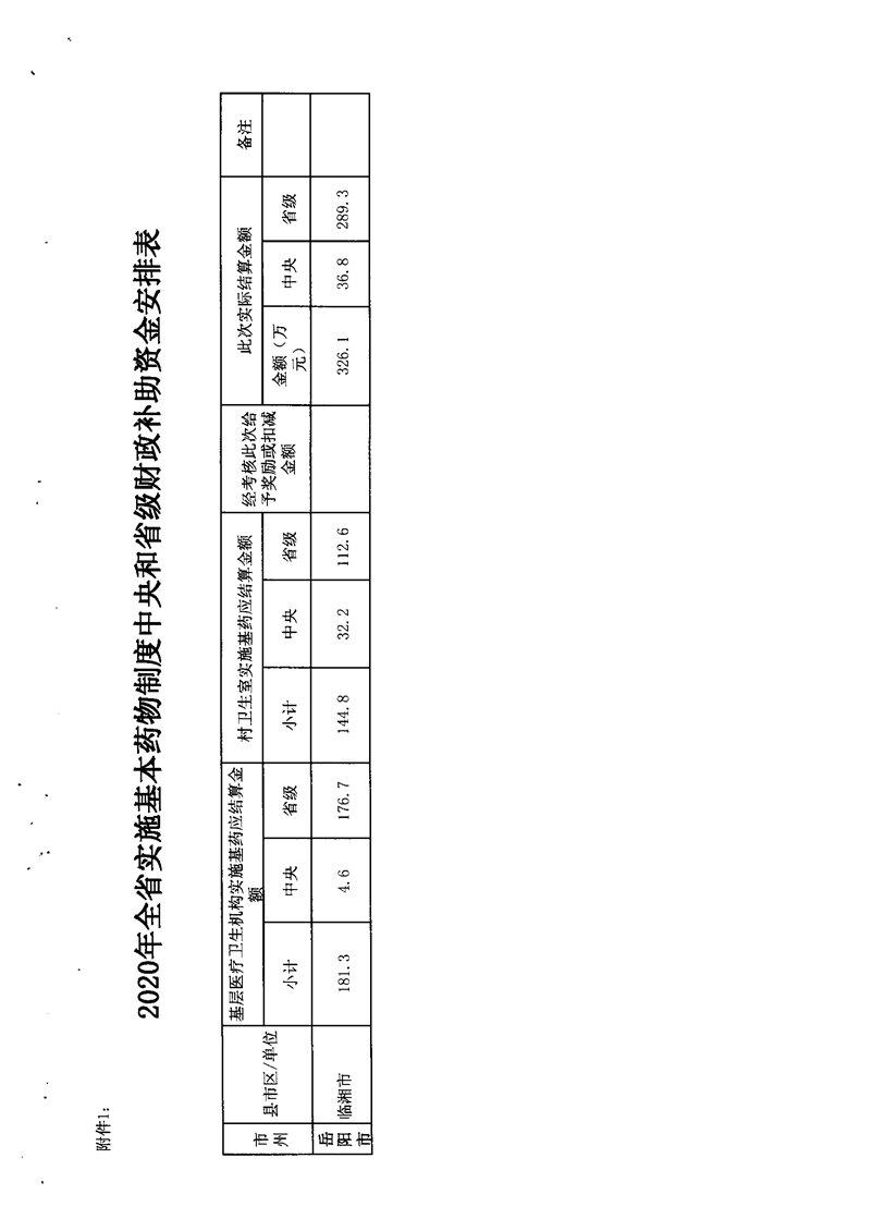 湖南省财政厅关于下达实施基本药物制度中央和省级财政补助资金的通知