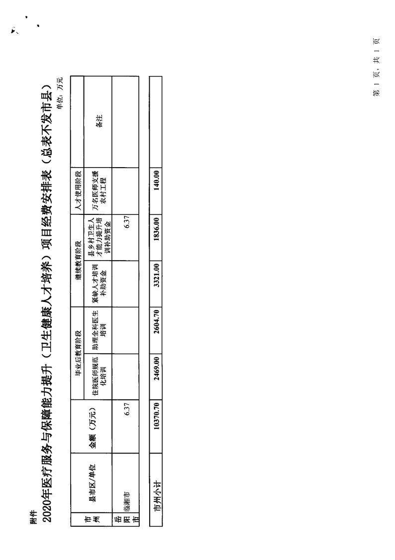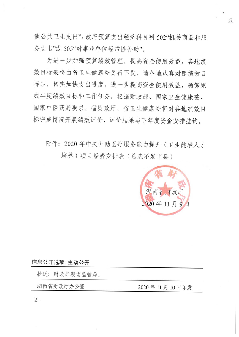 湖南省财政厅关于下达2020年中央补助医疗服务能力提升(卫生健康人才培养)项目经费的通知
