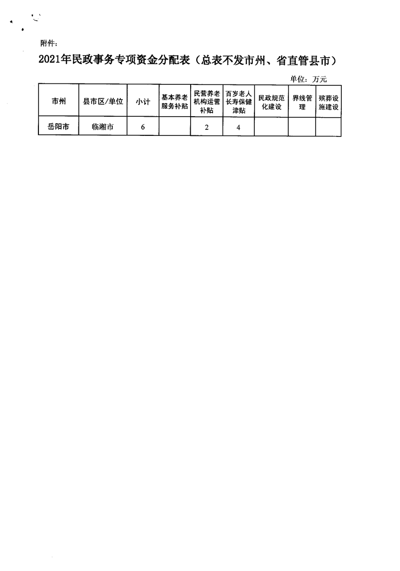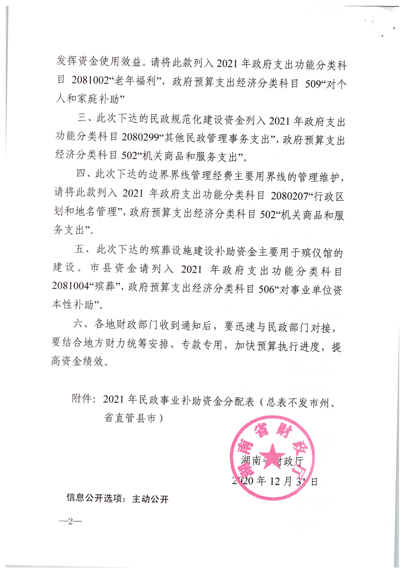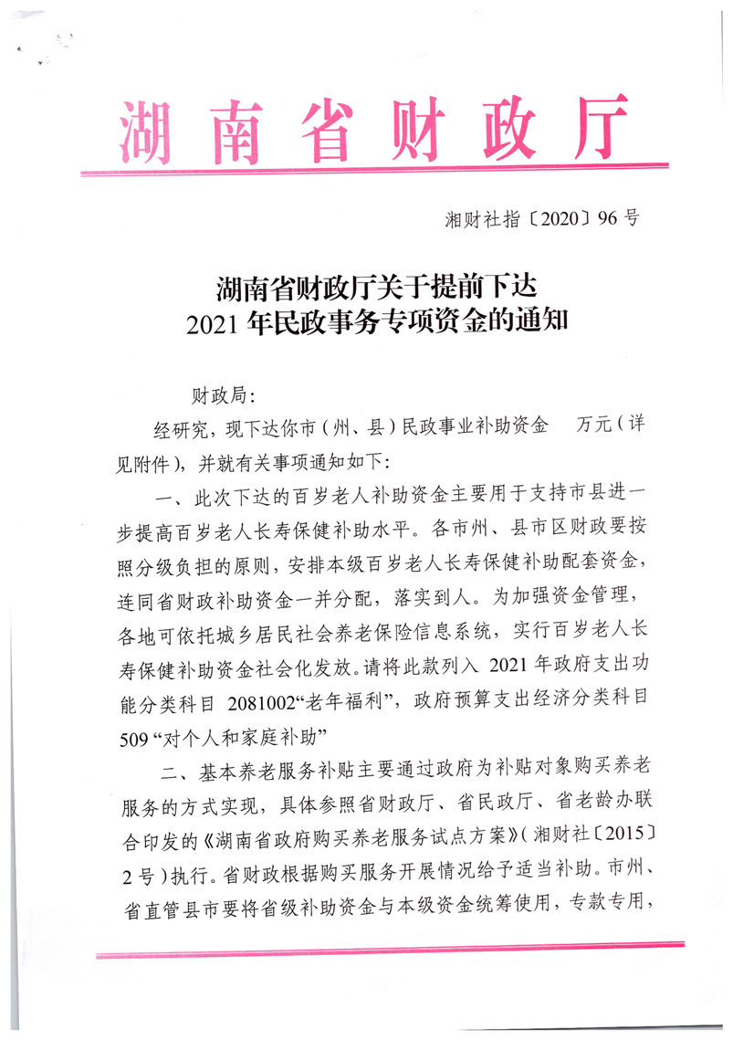 湖南省财政厅关于提前下达2021年民政事务专项资金的通知