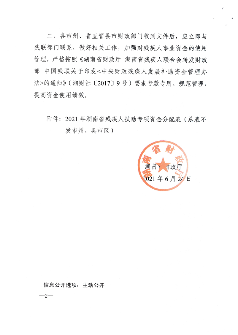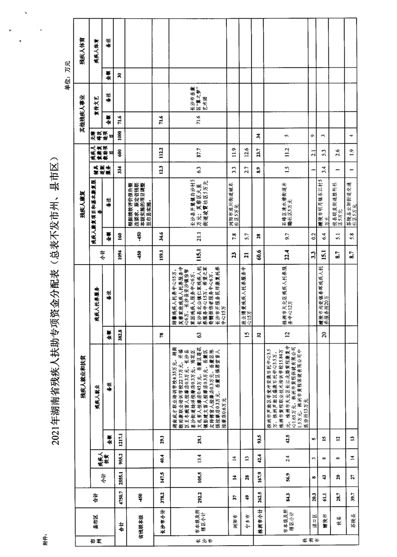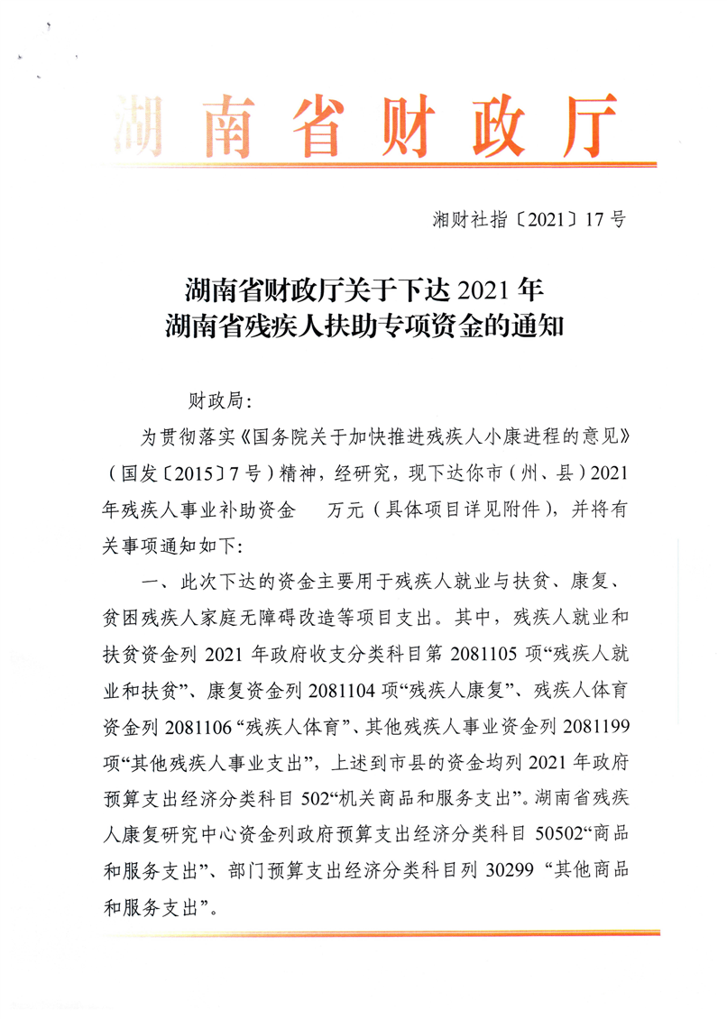 关于下达2021湖南省残疾人扶助专项资金的通知