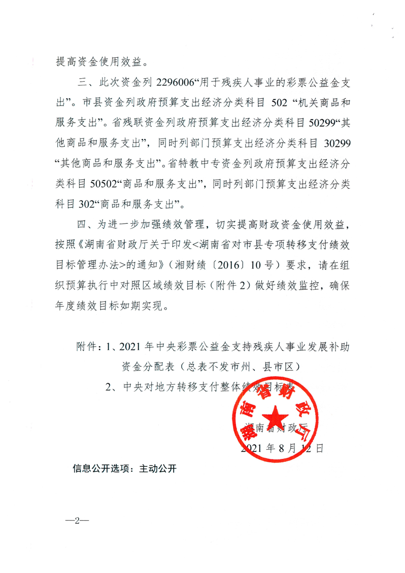 关于下达2021年中央彩票公益金支持残疾人事业发展补助资金的通知