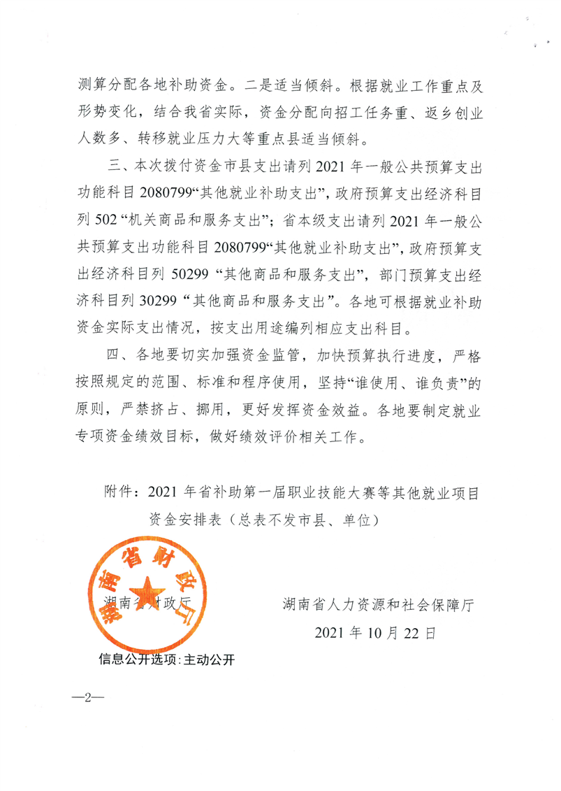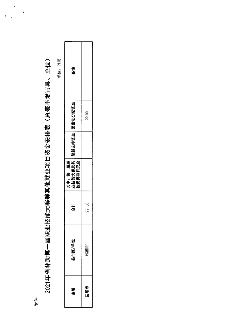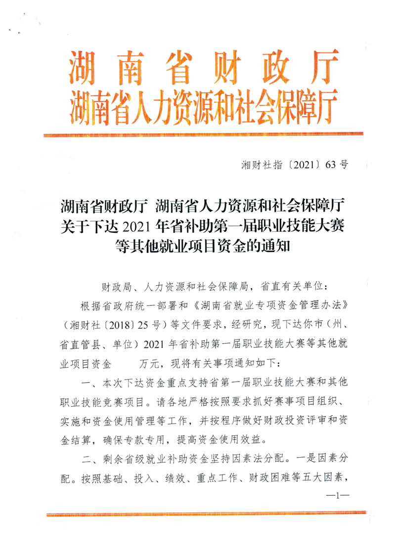 关于下达2021年省补助第一节职业技能大赛等其他就业项目资金的通知
