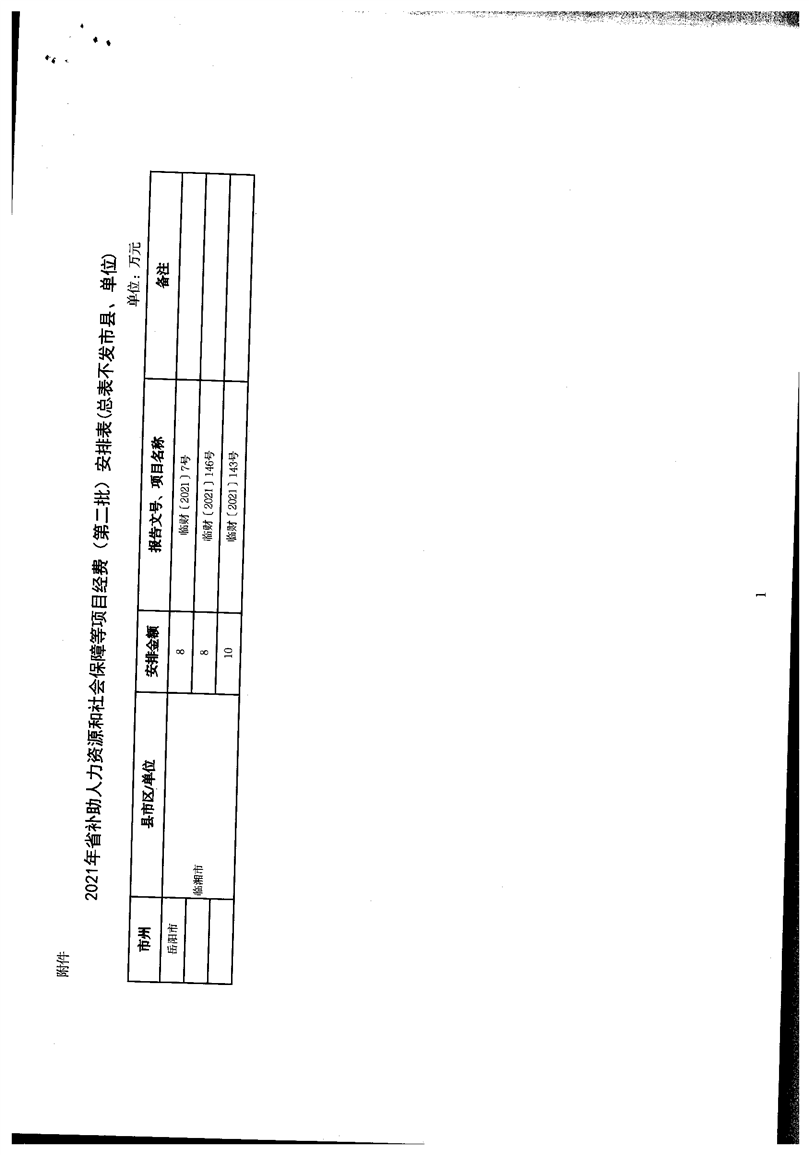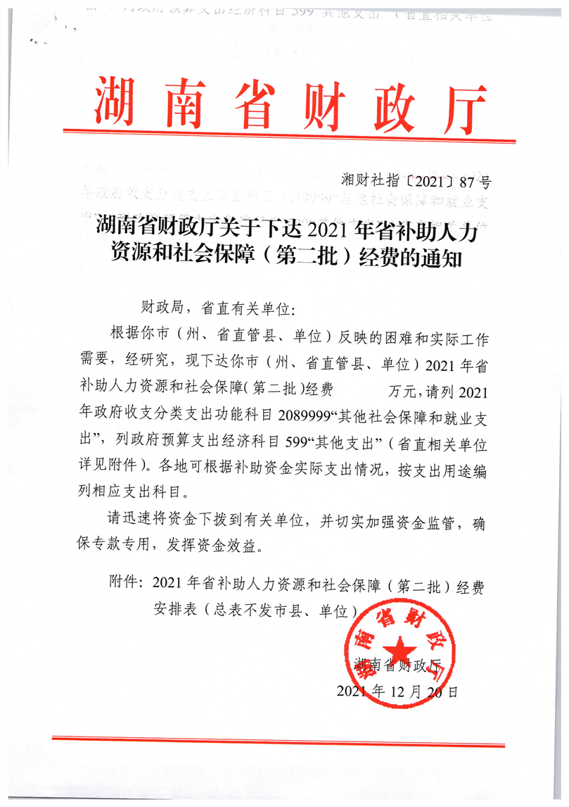 关于下达2021年省补助人力资源和社会保障(第二批)经费的通知