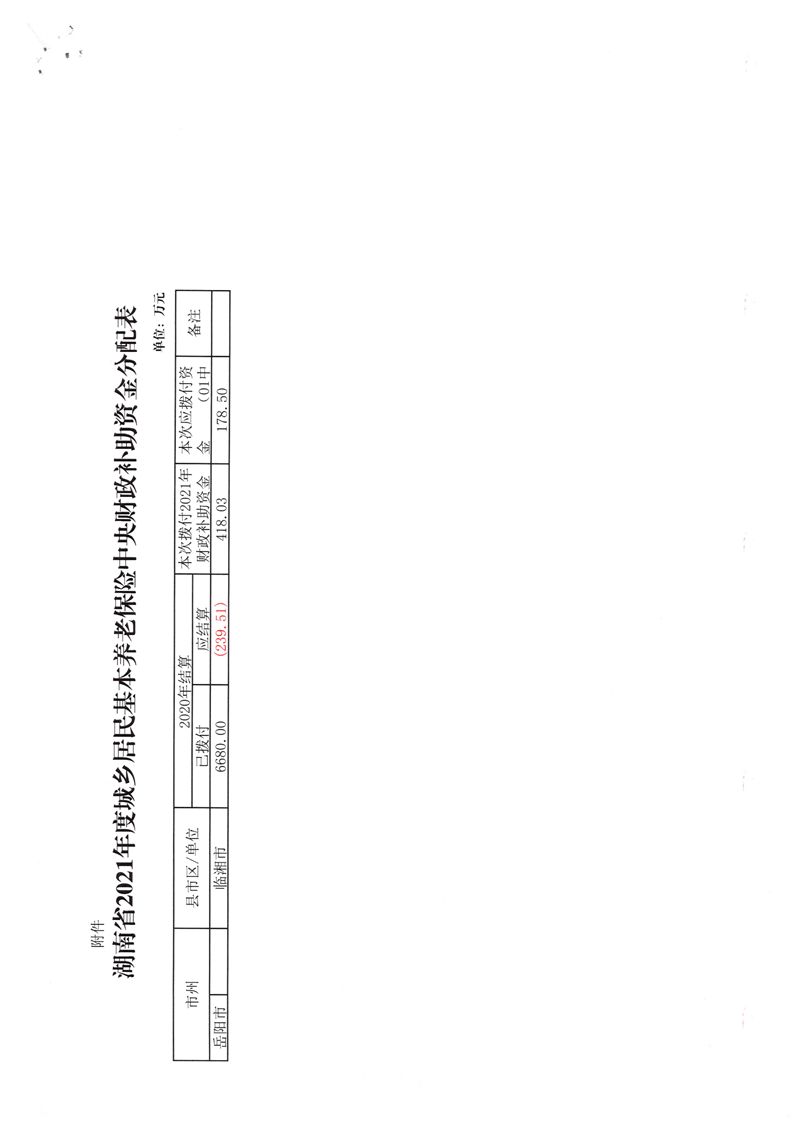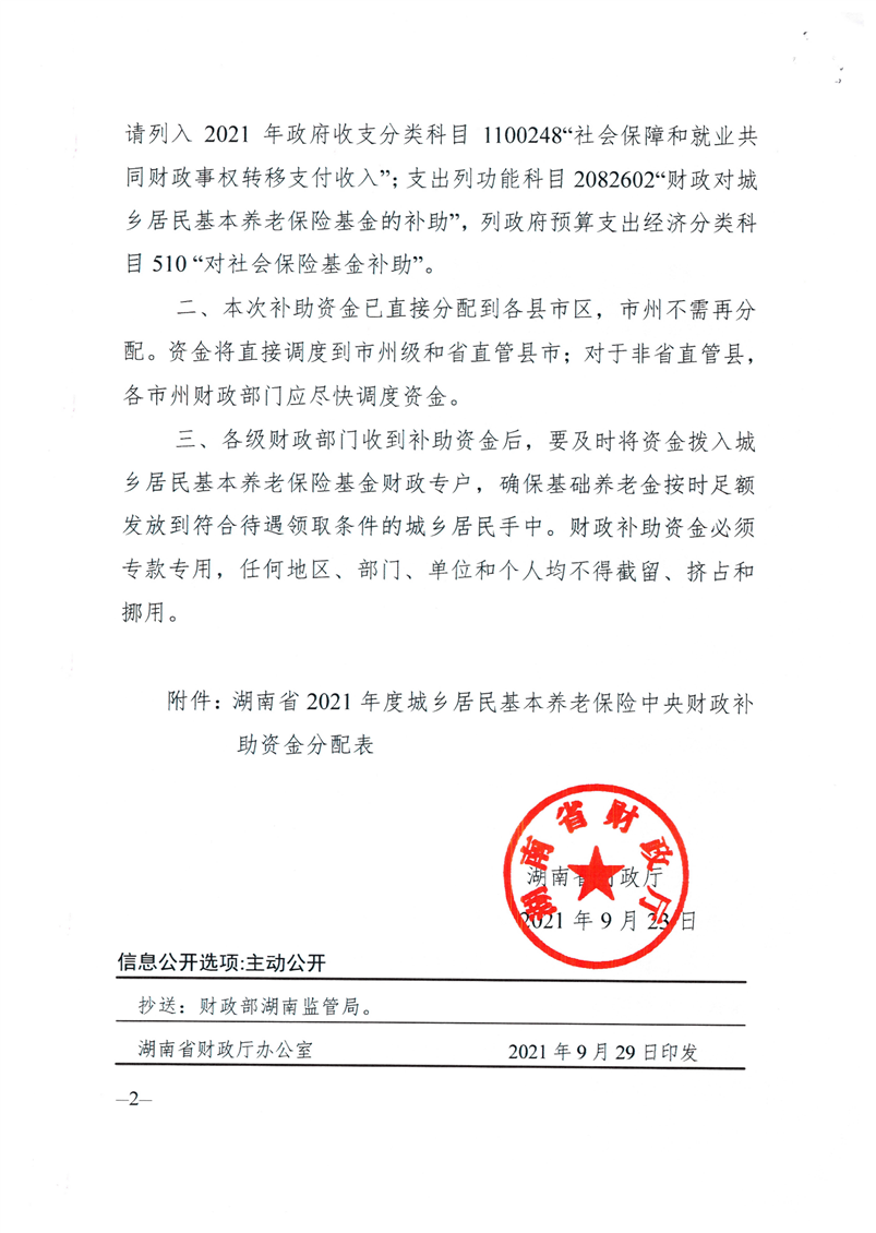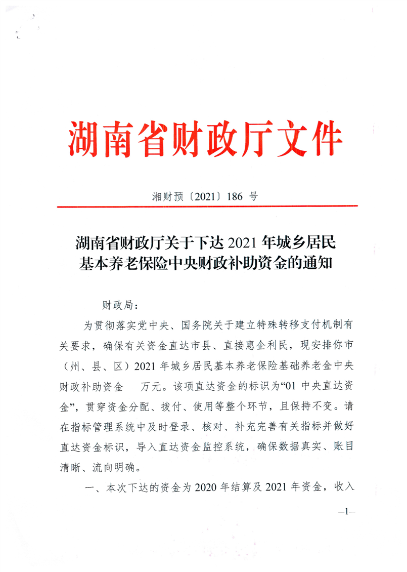 关于下达2021年城乡居民基本养老保险中央财政补助资金的通知