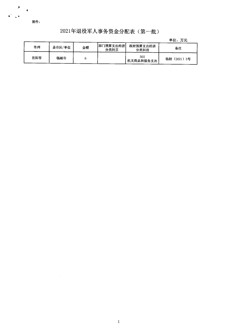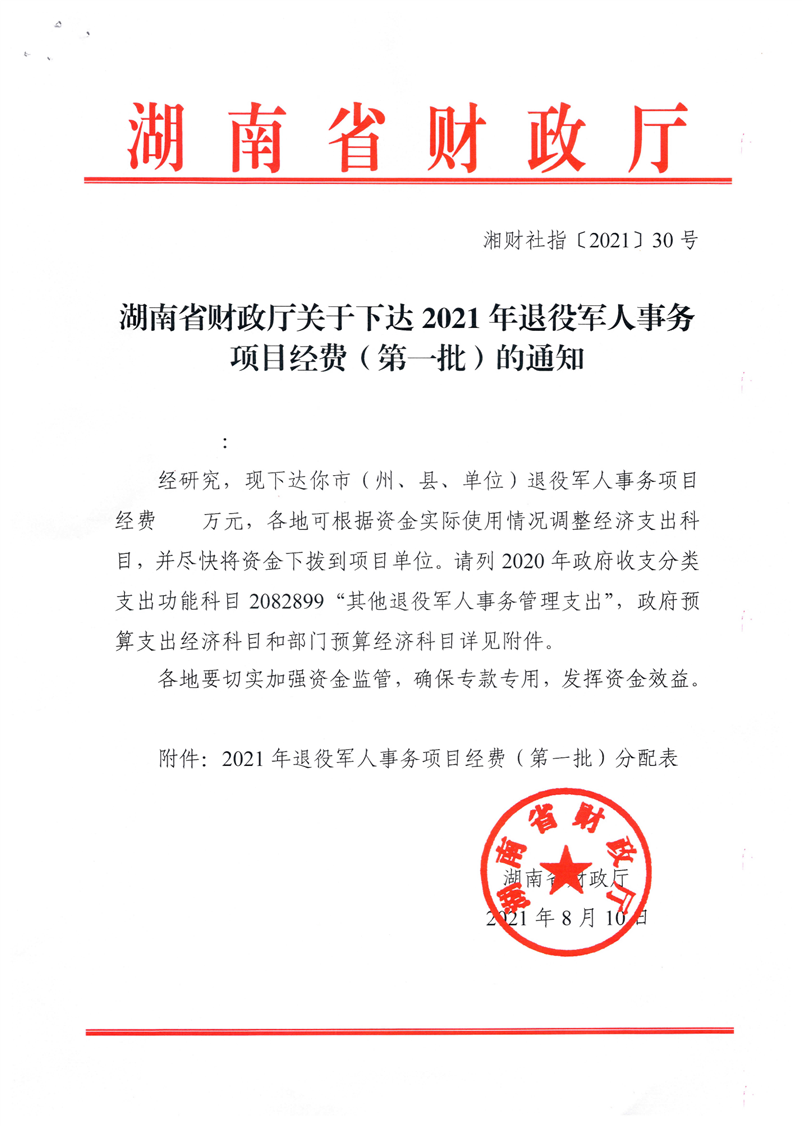 关于下达2021年退役军人事务项目经费(第一批)的通知
