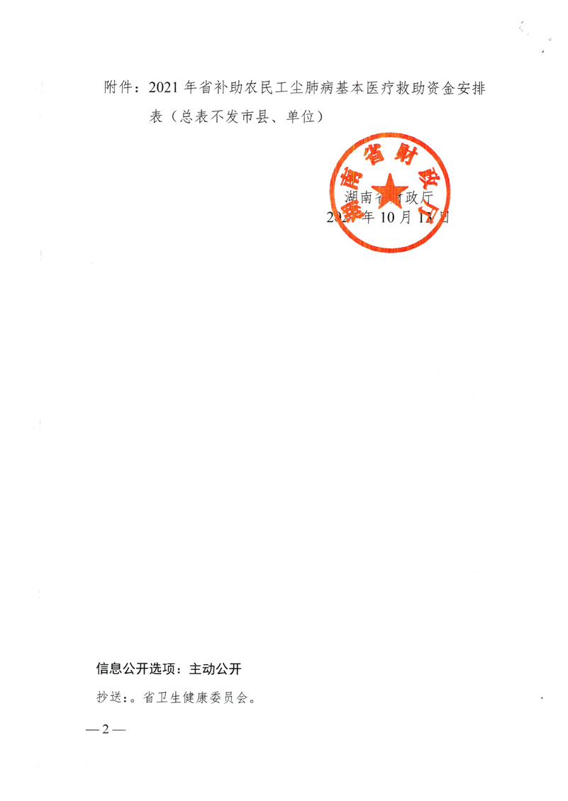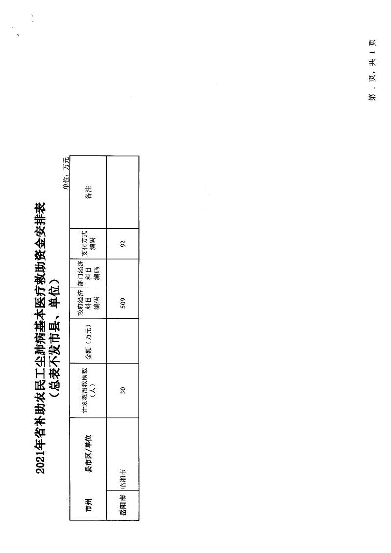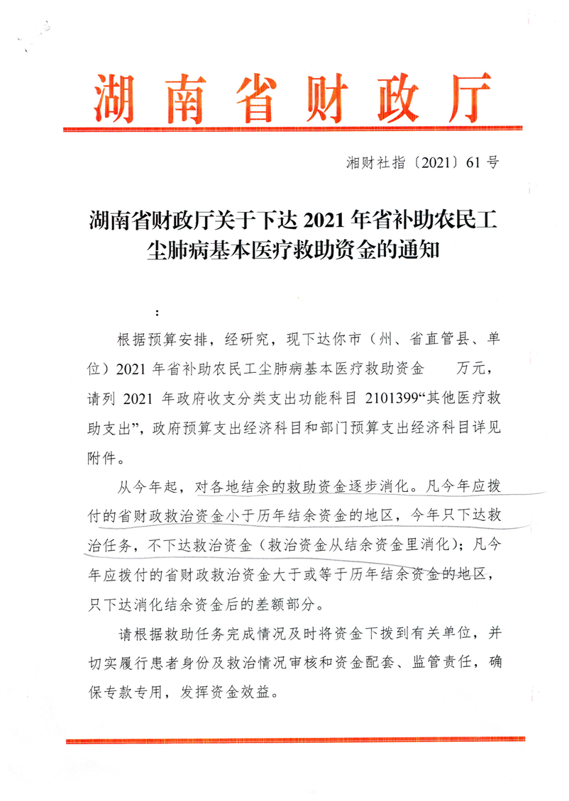 关于下达2021年补助农民工尘肺病基本医疗救助资金的通知