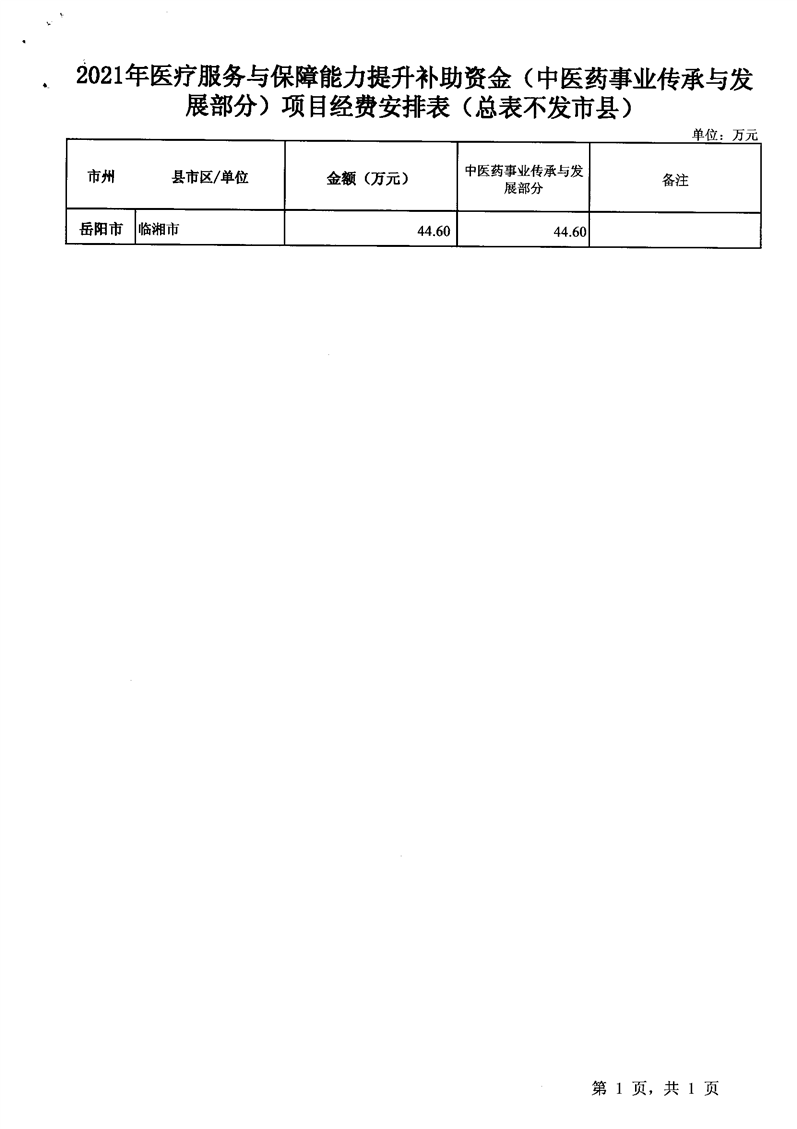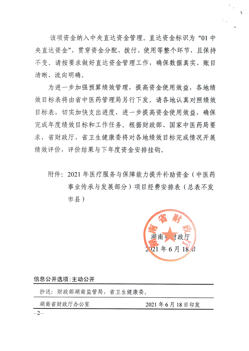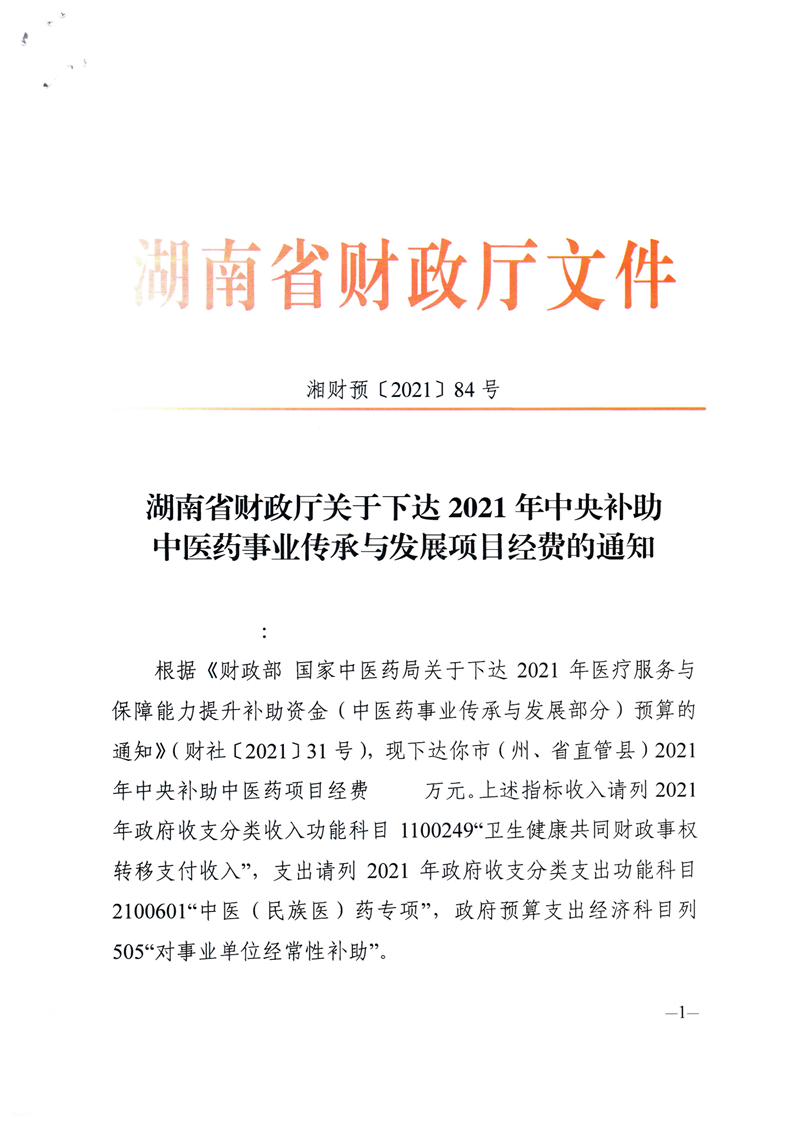 关于下达2021年中央补助中医药事业传承与发展项目经费的通知