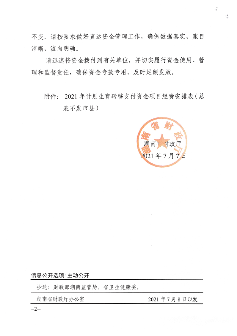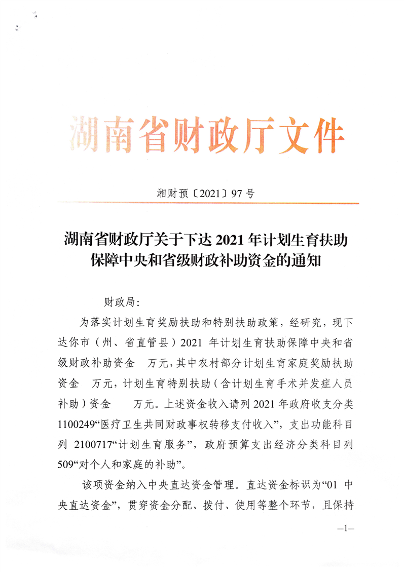 关于下达2021年计划生育扶助保障中央和省级财政补助资金的通知