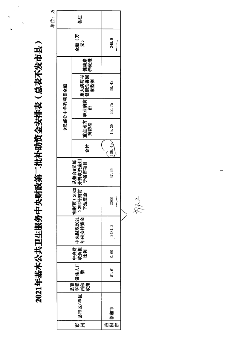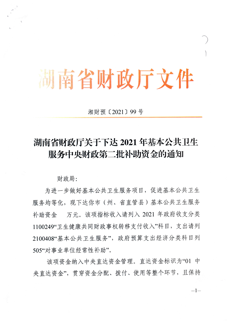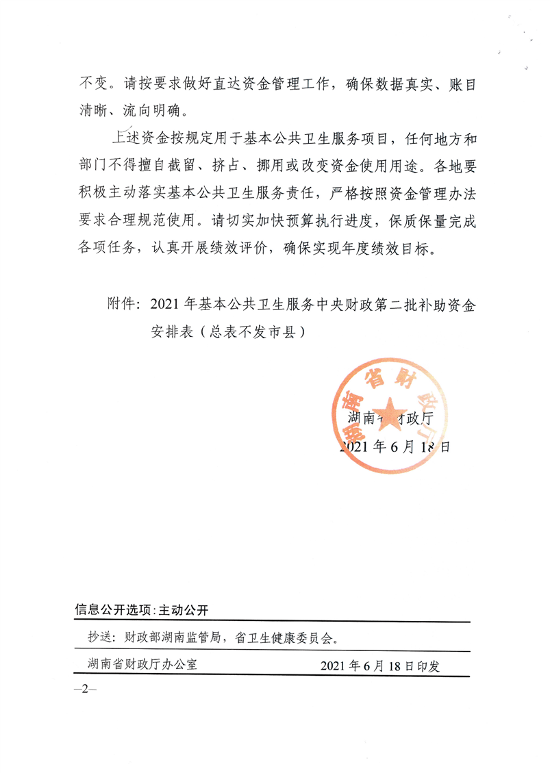 关于下达2021年基本公共卫生服务中央财政第二批补助资金的通知