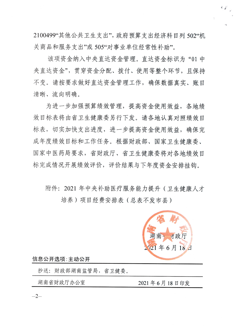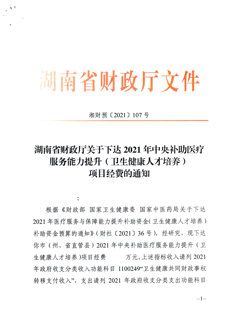 关于下达2021年中央补助医疗服务能力提升(卫生健康人才培养)项目经费的通知