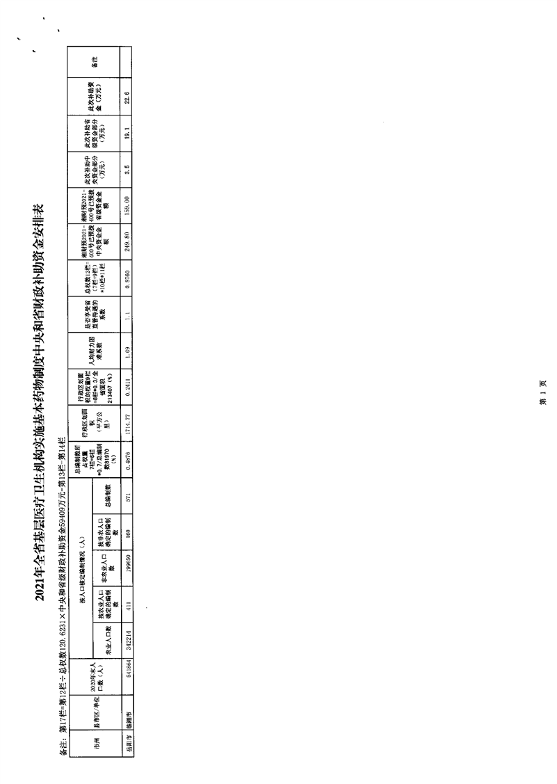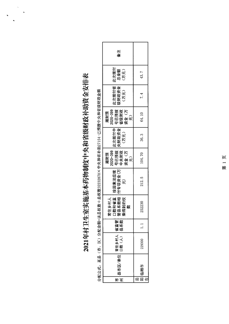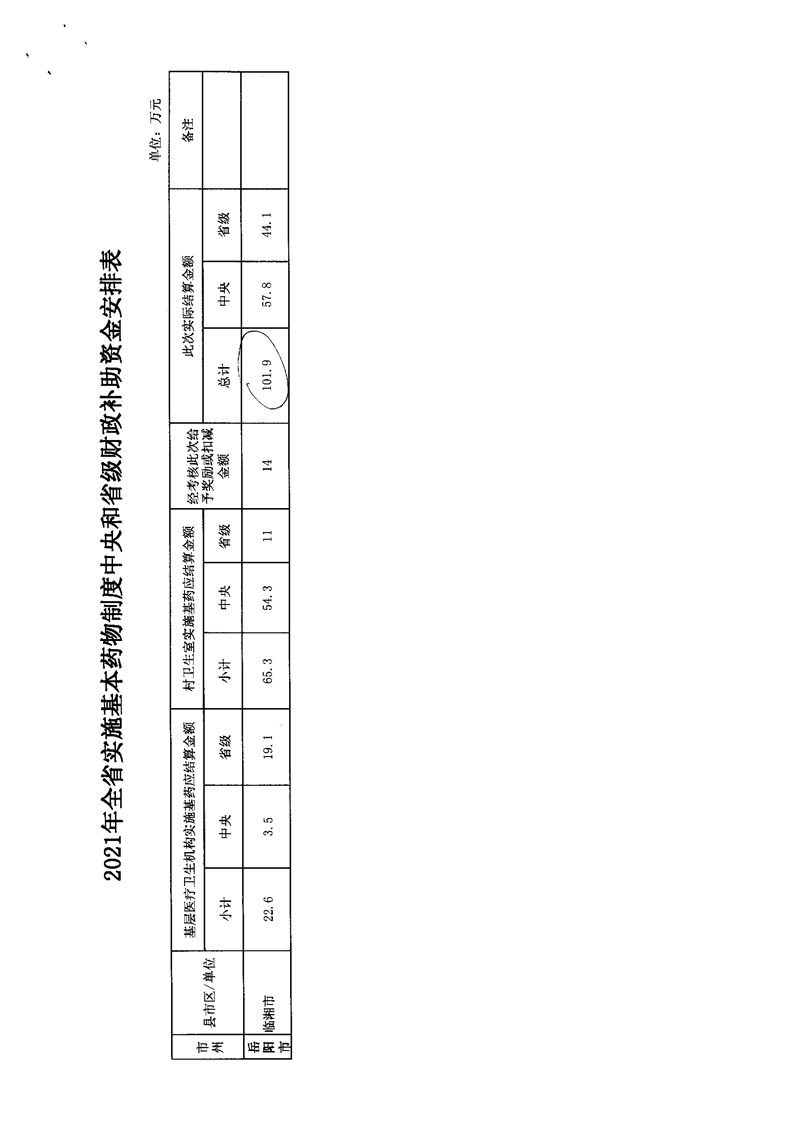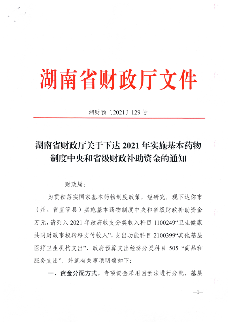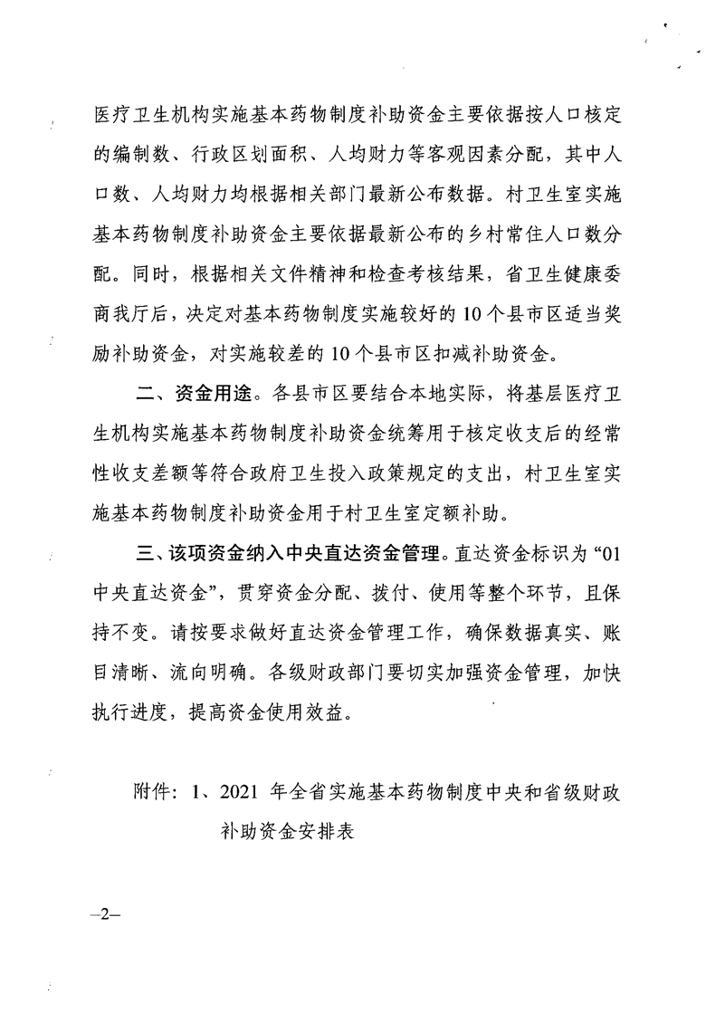 关于下达2021年实施基本药物制度中央和省级财政补助资金的通知