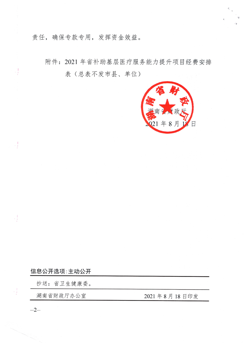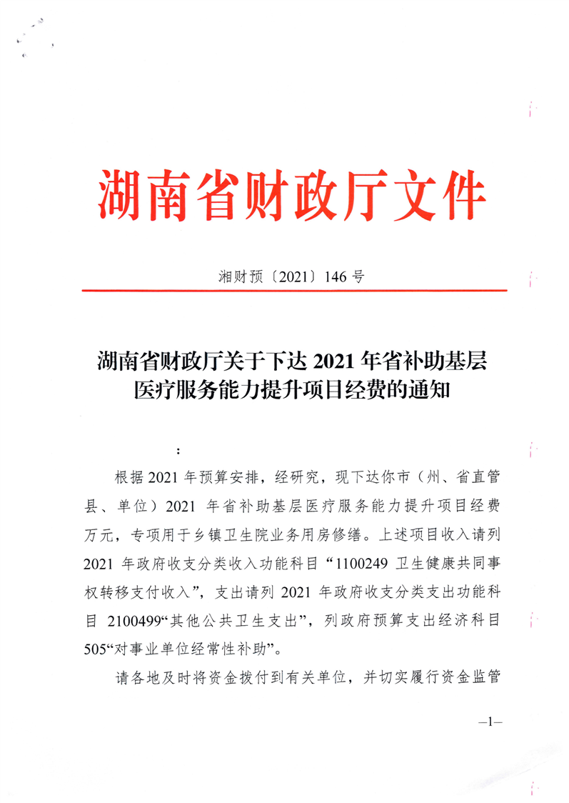 关于下达2021年省补助基层医疗服务能力提升项目经费的通知
