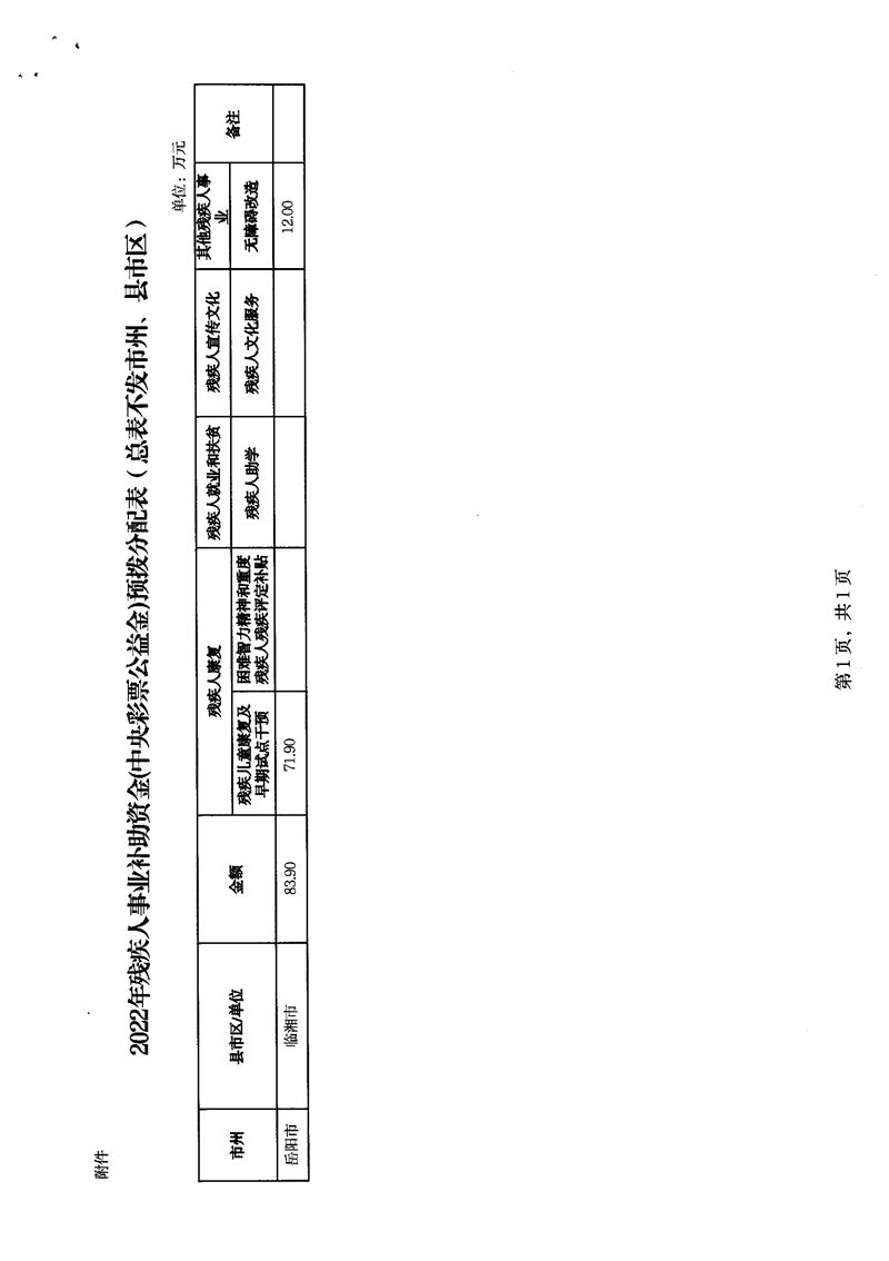 关于提前下达2022年残疾人事业补助资金(中央彩票公益金)的通知