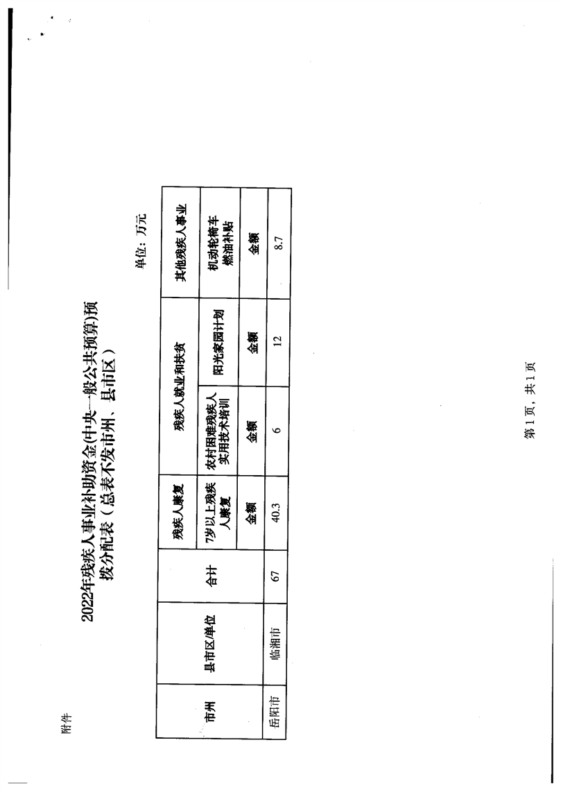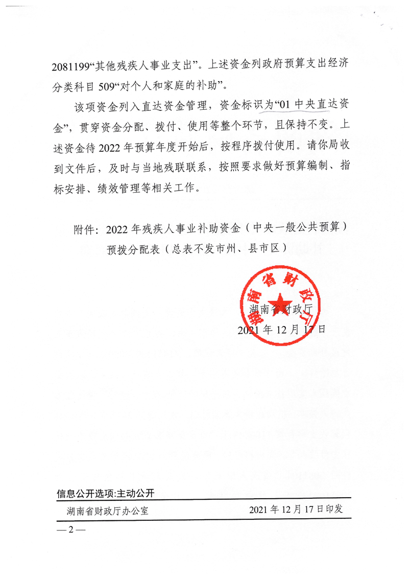 关于提前下达2022年残疾人事业补助资金(中央一般公共预算)的通知