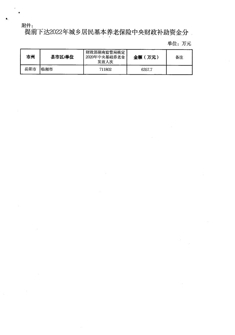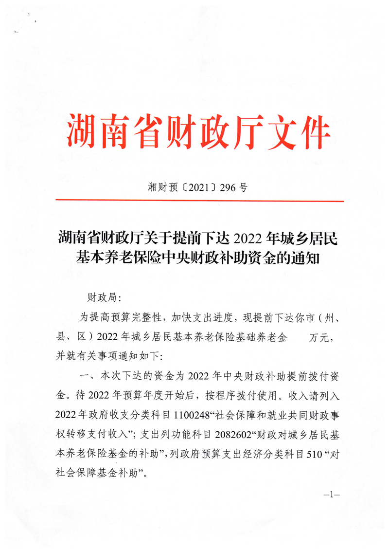 关于提前下达2022年城乡居民基本养老保险中央财政补助资金的通知
