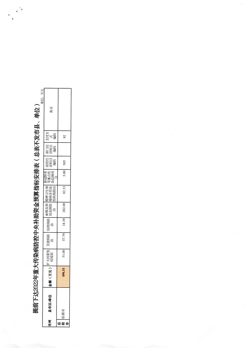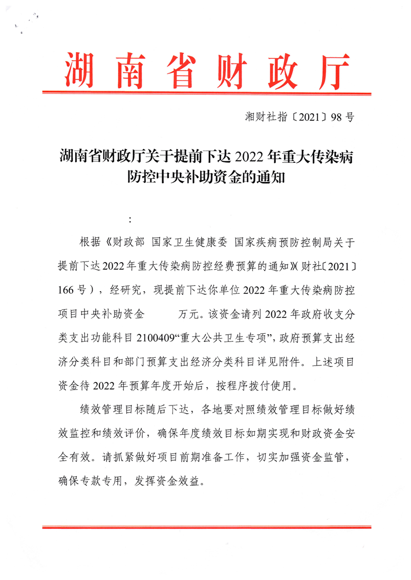 关于提前下达2022年重大传染病防控中央补助资金的通知