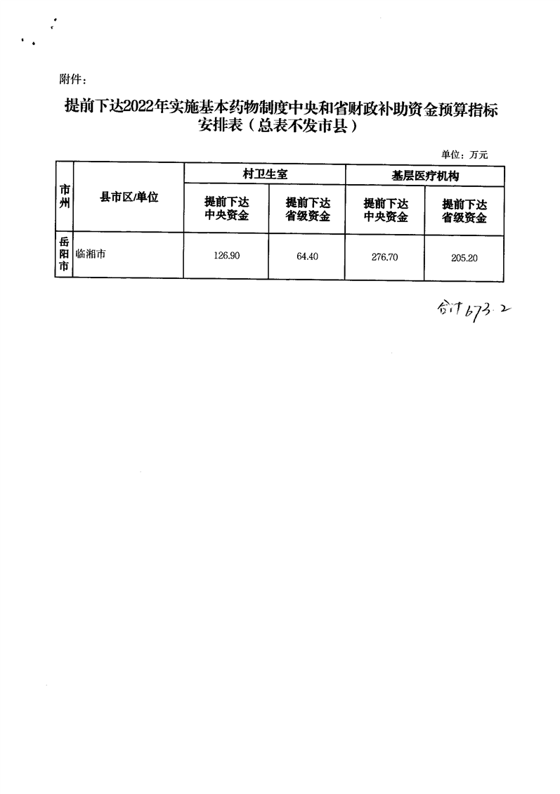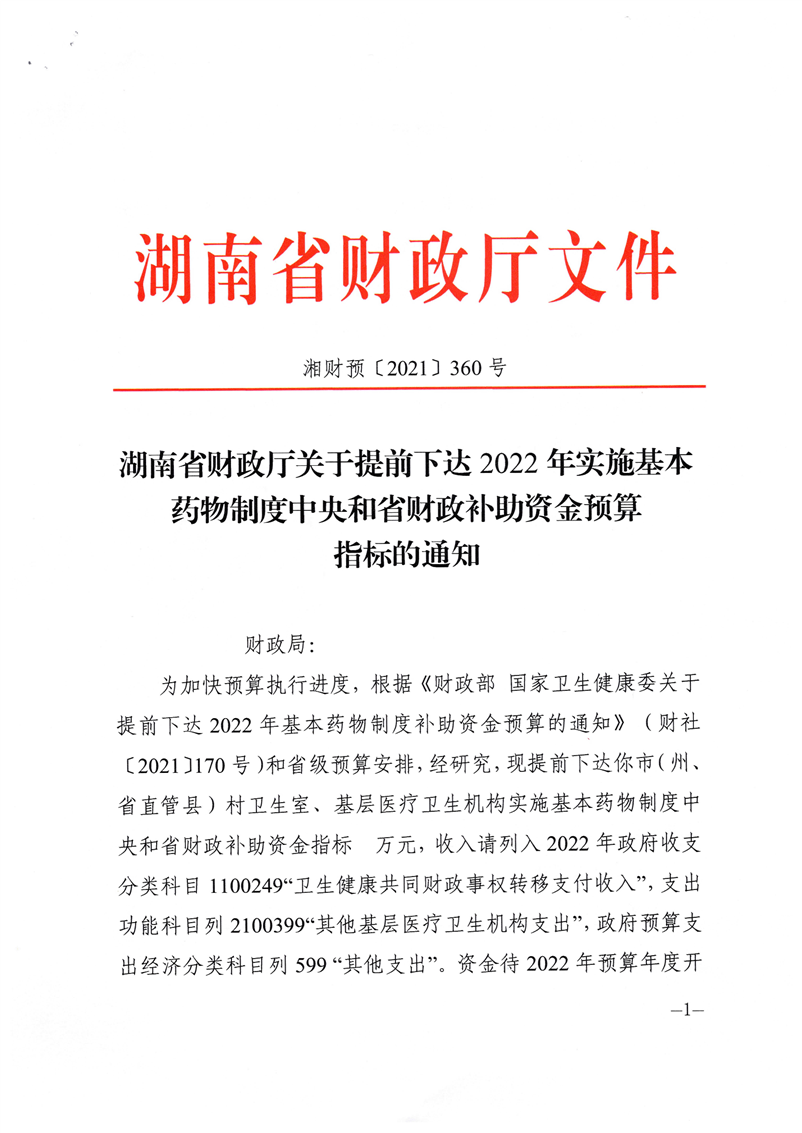 关于提前下达2022年实施基本药物制度中央和省财政补助资金预算指标的通知