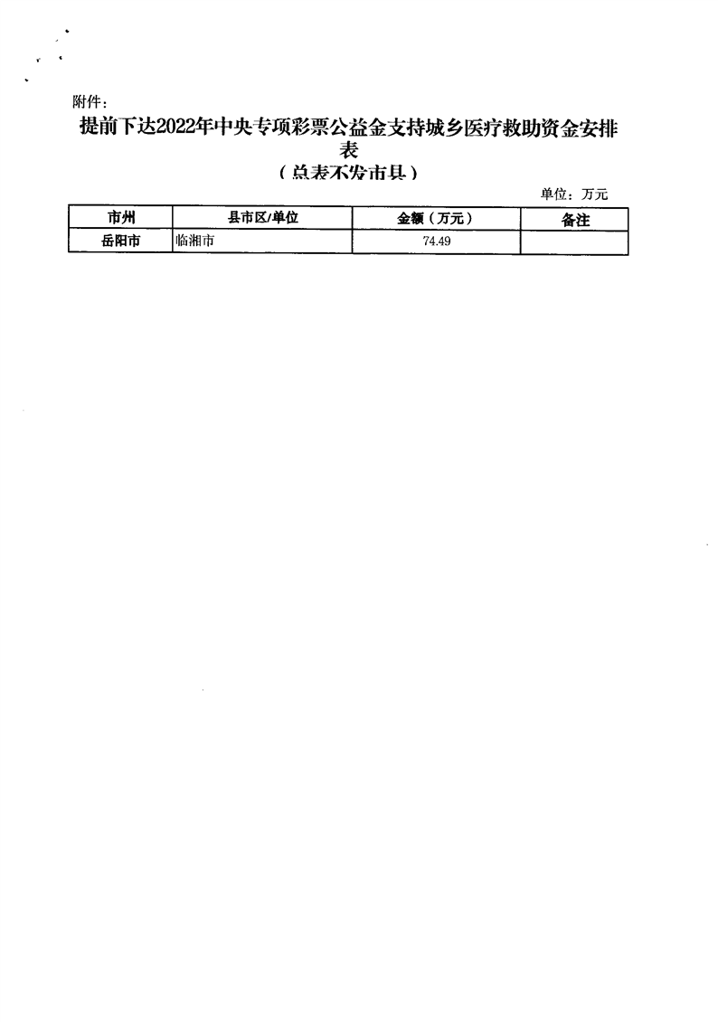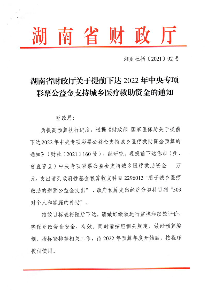 关于提前下达2022年中央专项彩票公益金支持城乡医疗救助资金的通知