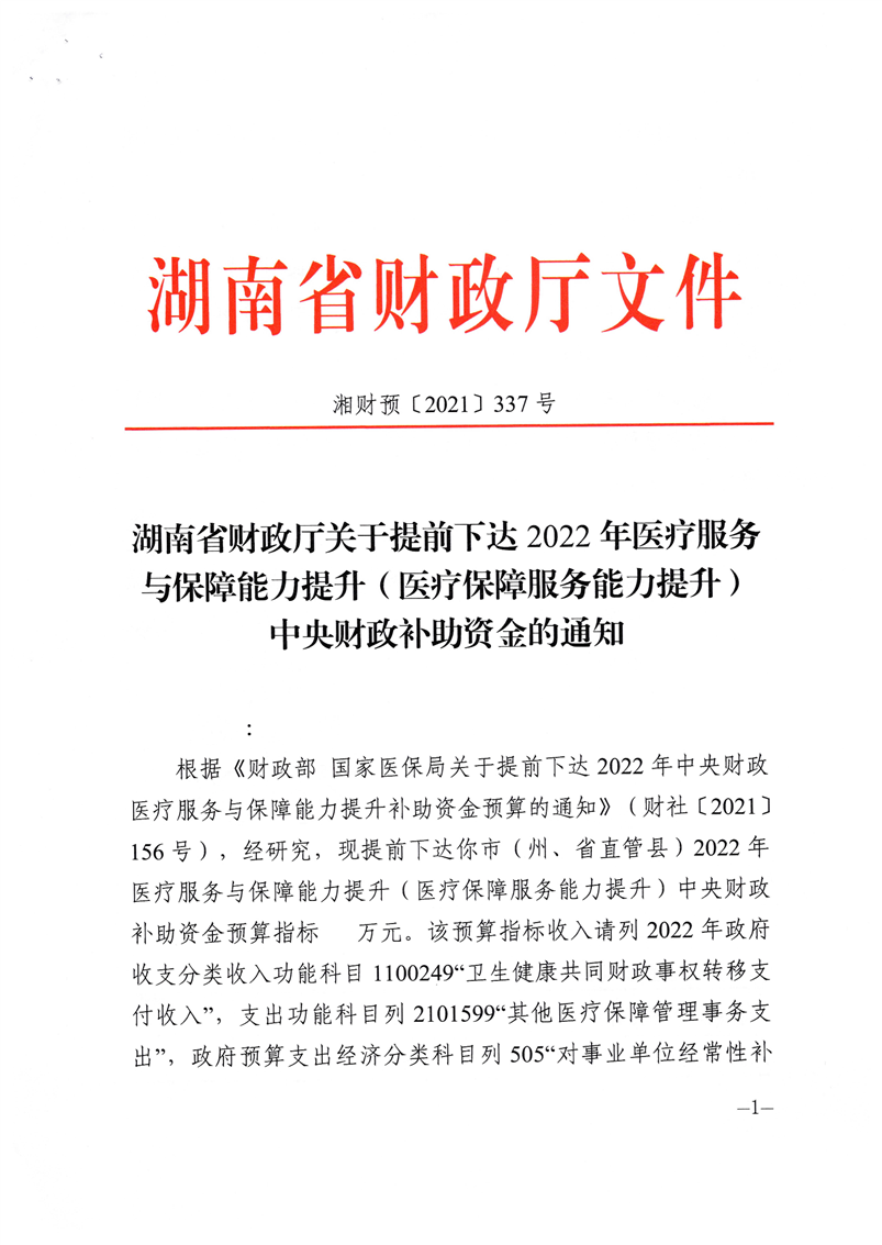 关于提前下达2022年医疗服务与保障能力提升(医疗保障服务能力提升)中央财政补助资金的通知