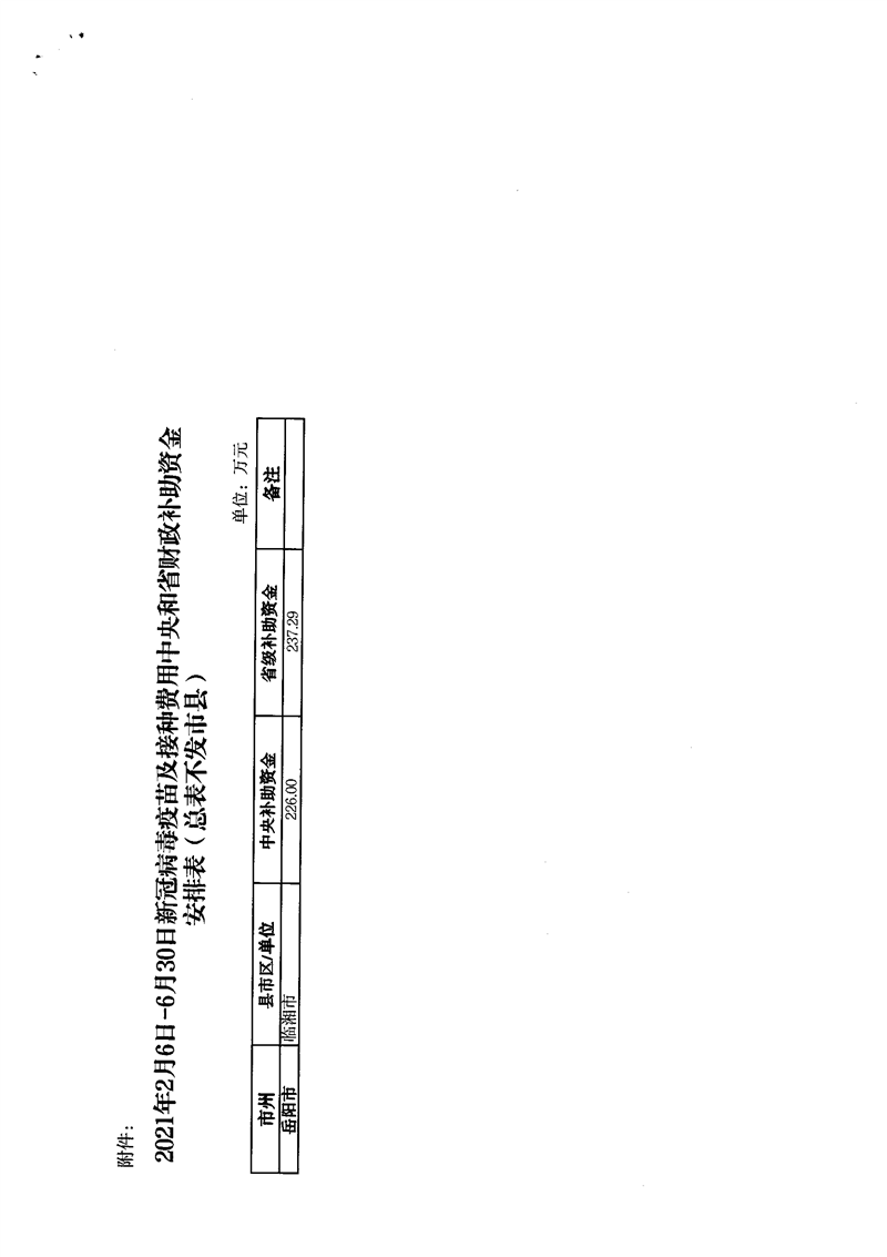 关于下达2021年新冠病毒疫苗及接种费用中央和省财政补助资金的通知