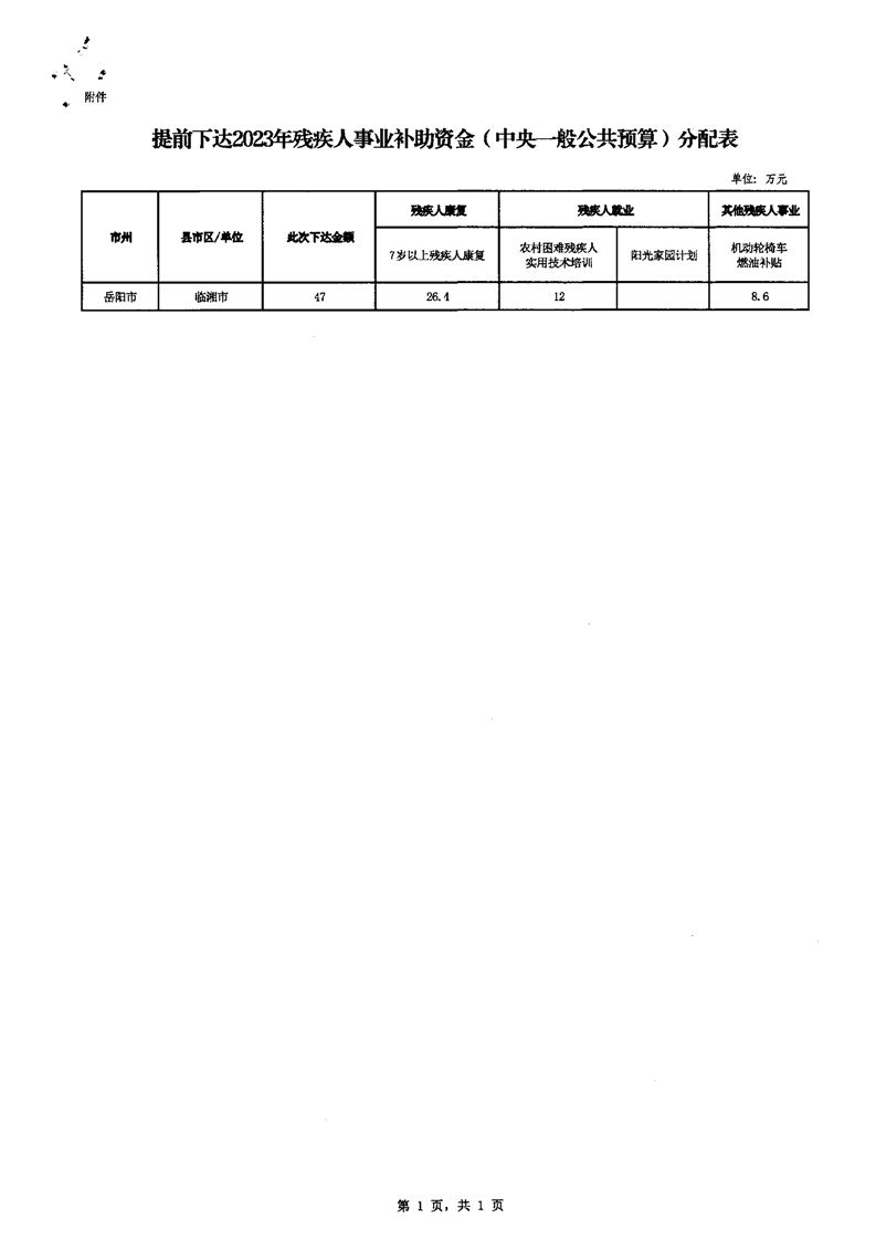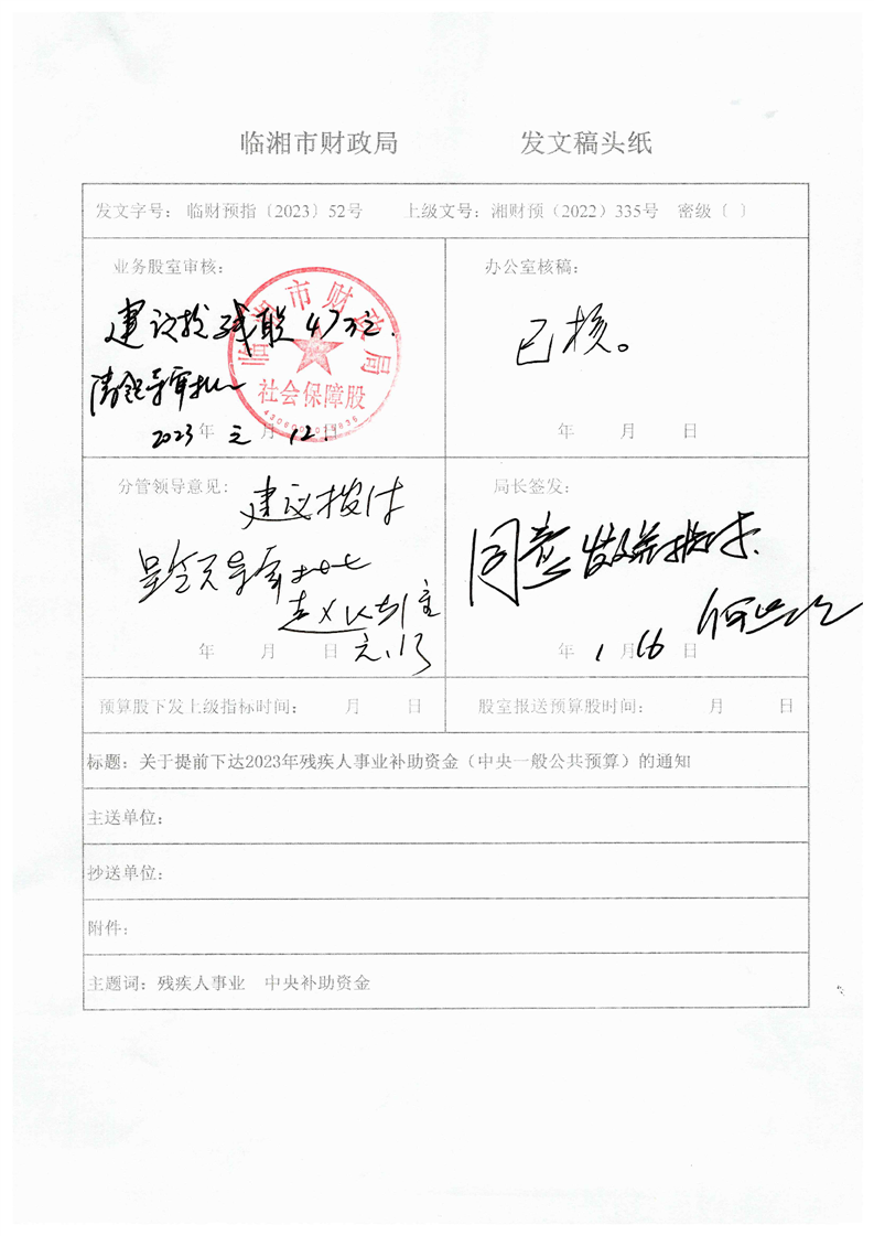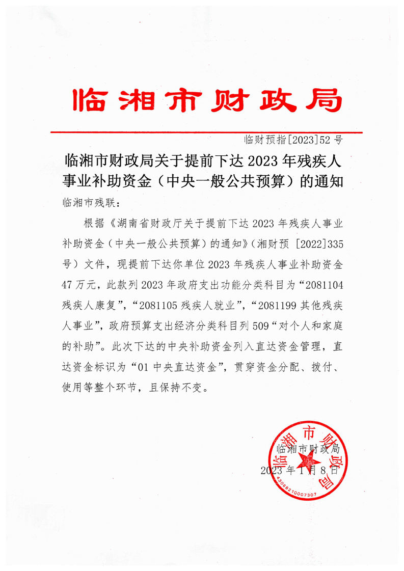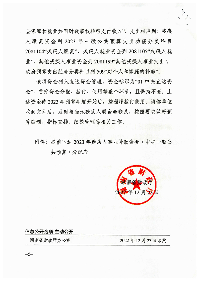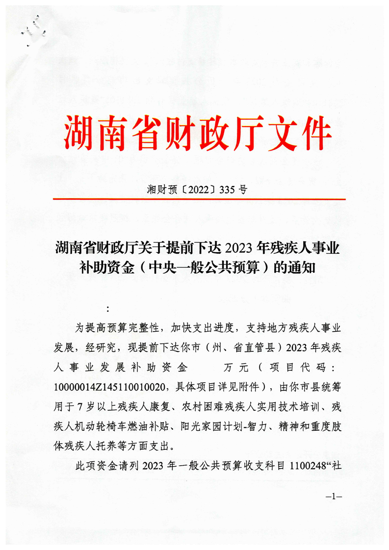 关于提前下达2023年残疾人事业补助资金(中央一般公共预算)的通知