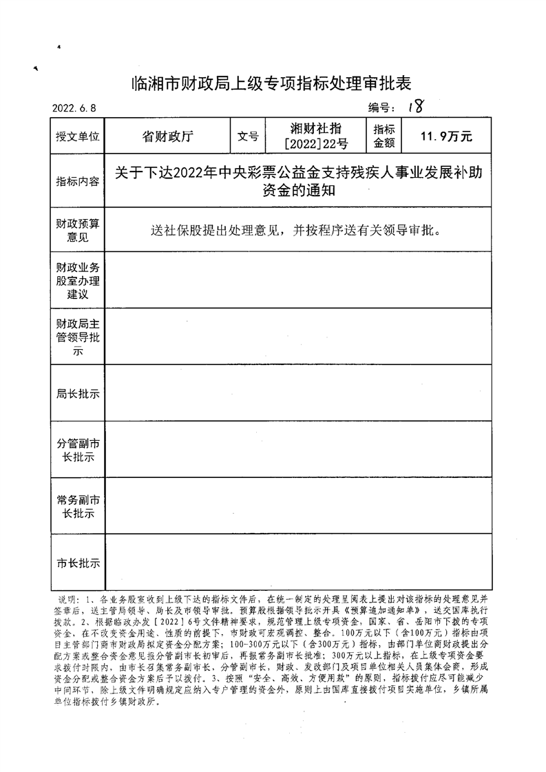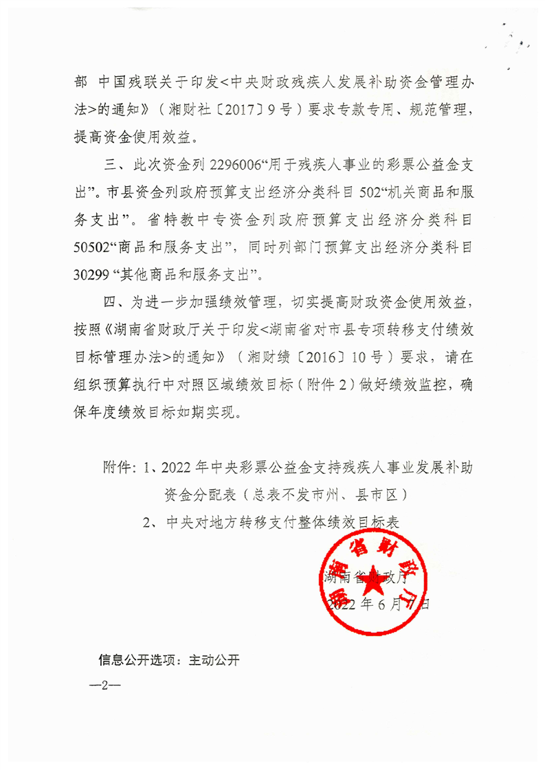 关于下达2022年中央彩票公益金支持残疾人事业发展补助资金的通知