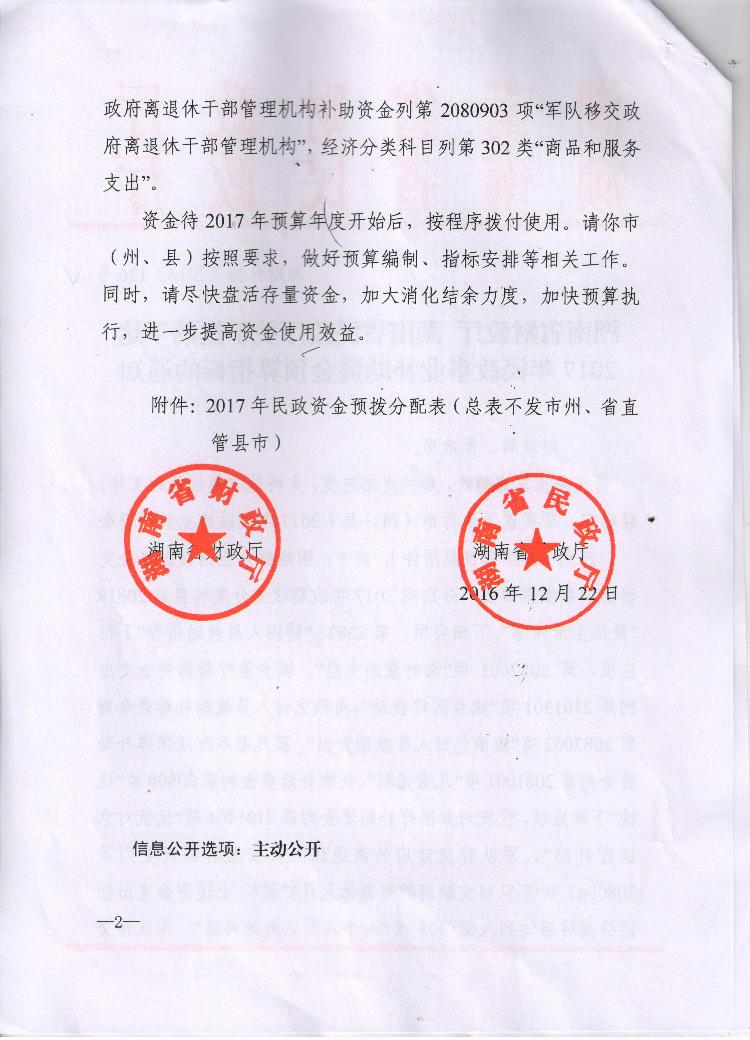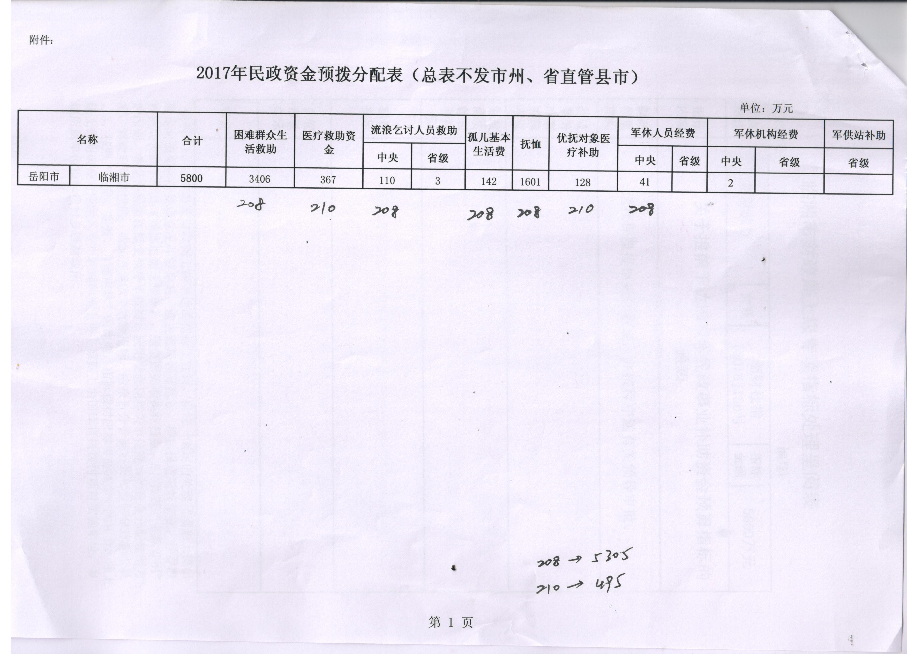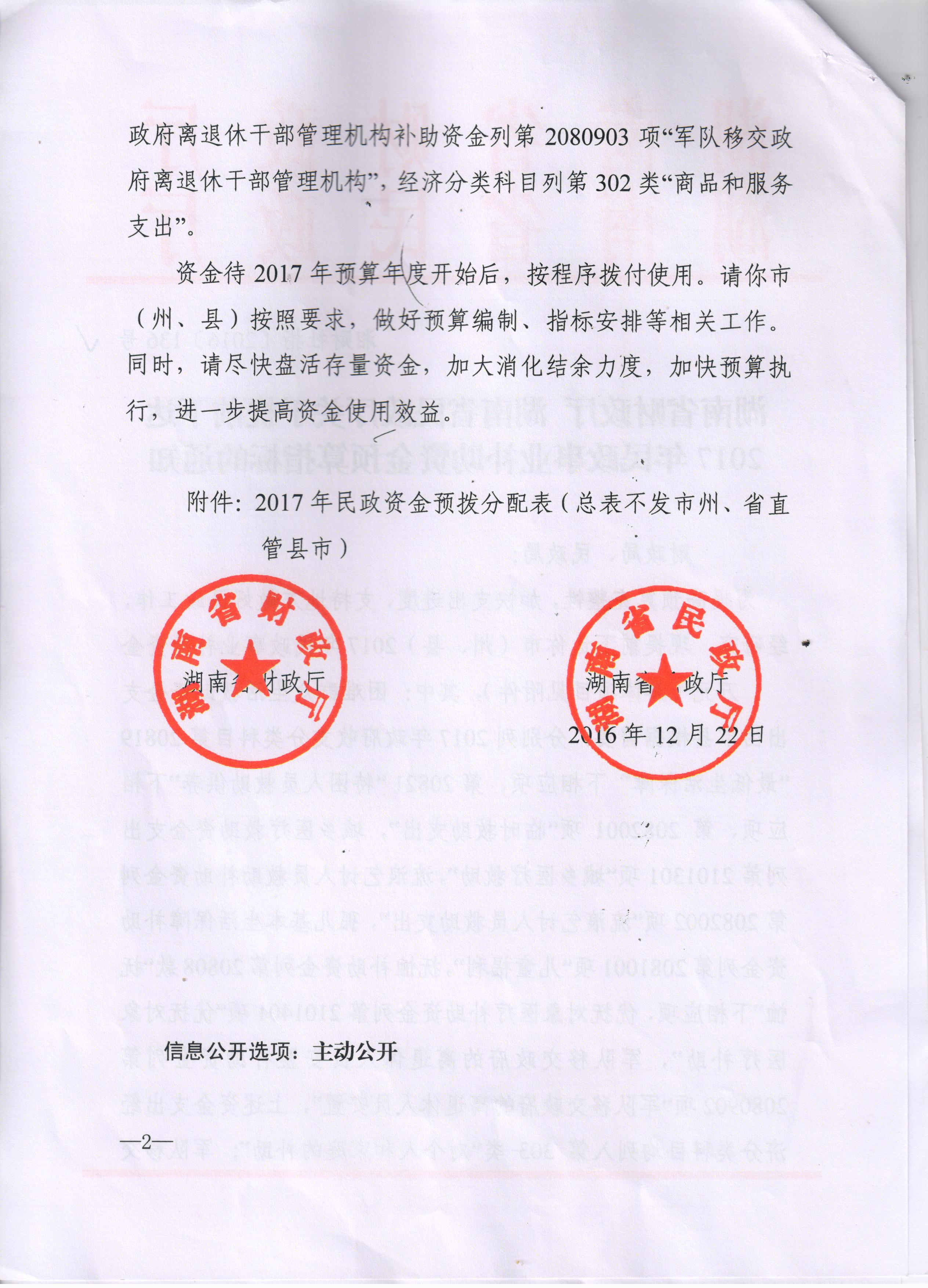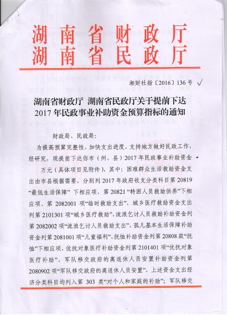 湖南省财政厅 湖南省民政厅关于提前下达2017年民政事业补助资金预算指标的通知