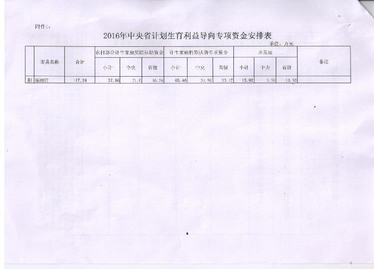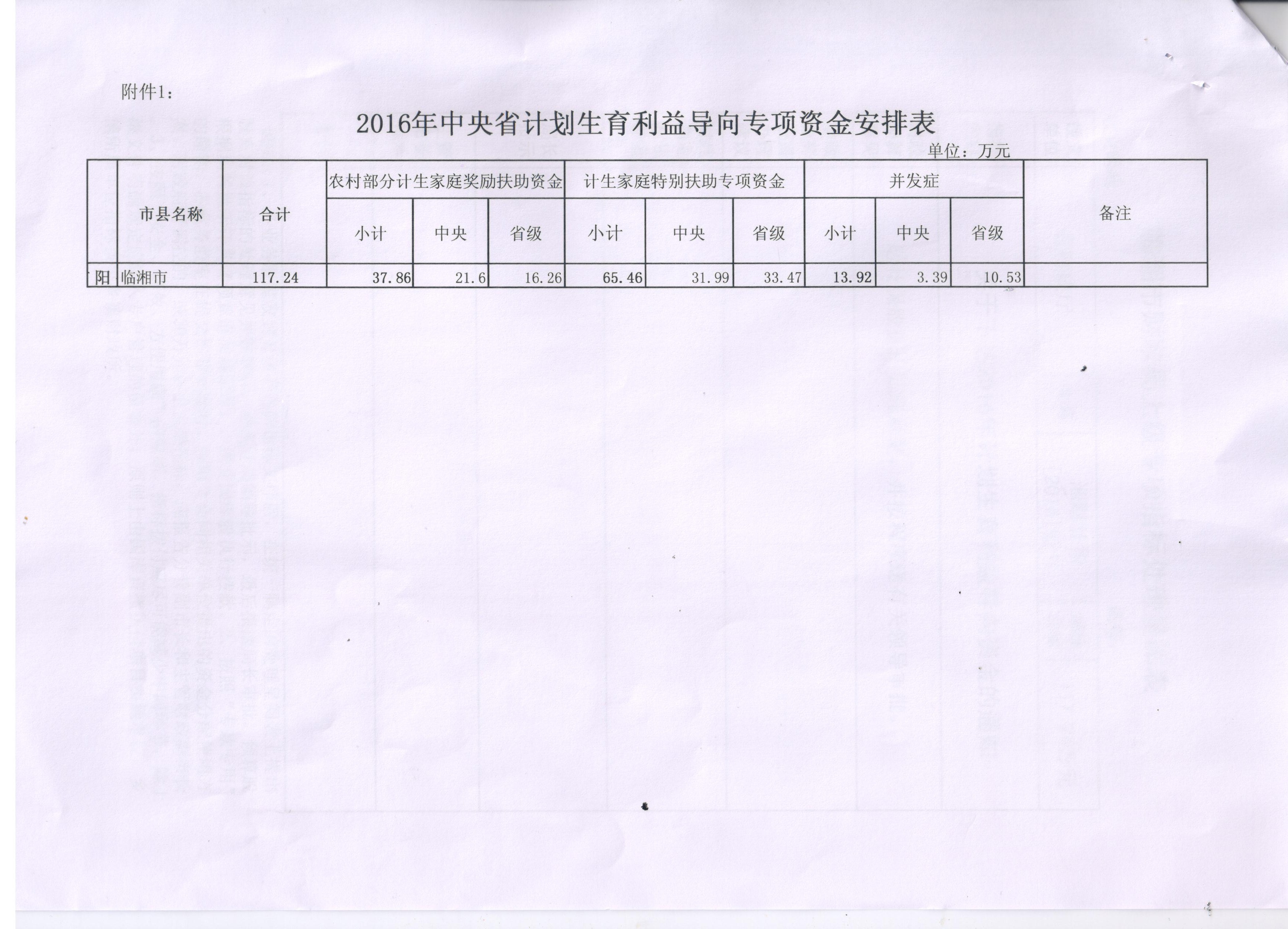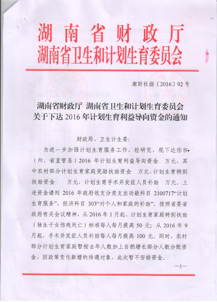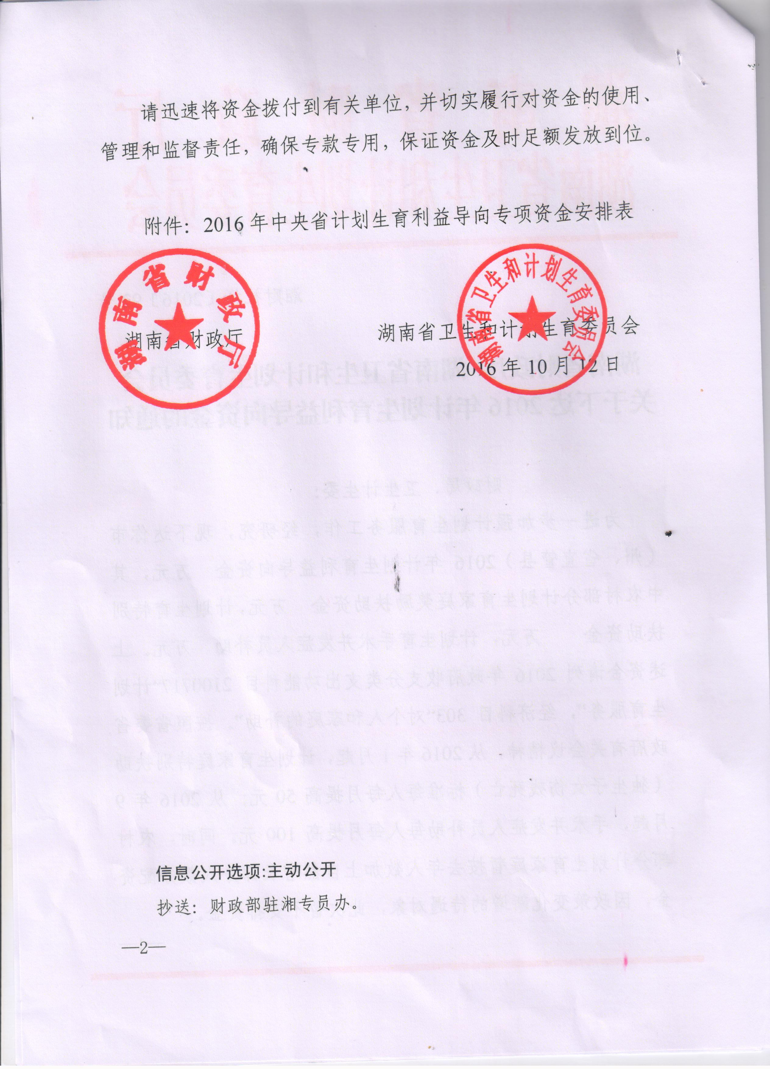 湖南省财政厅 湖南省卫生和计划生育委员会关于下达2016年计划生育利益导向资金的通知