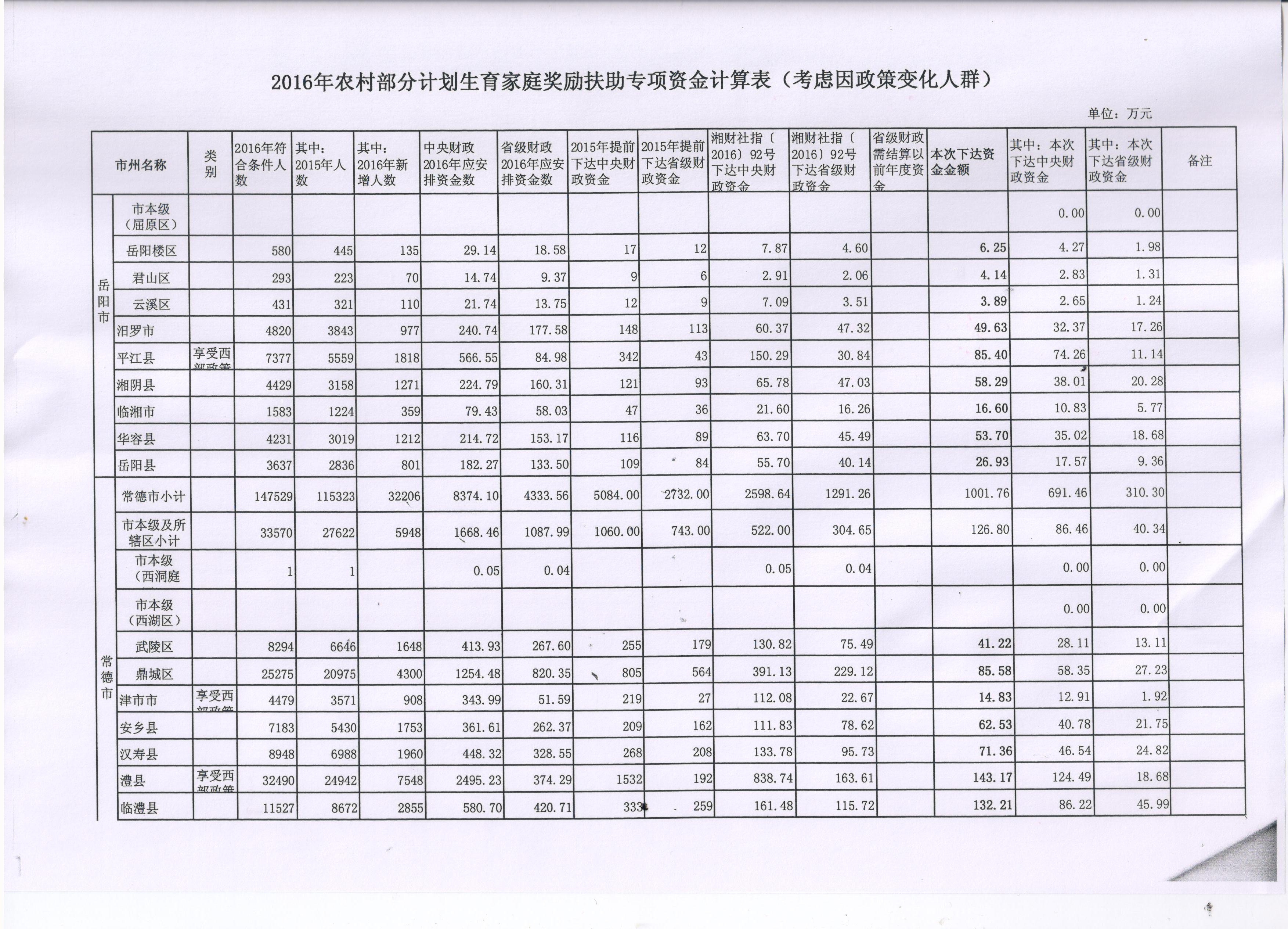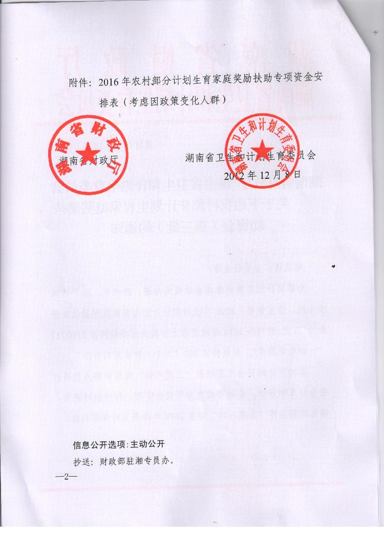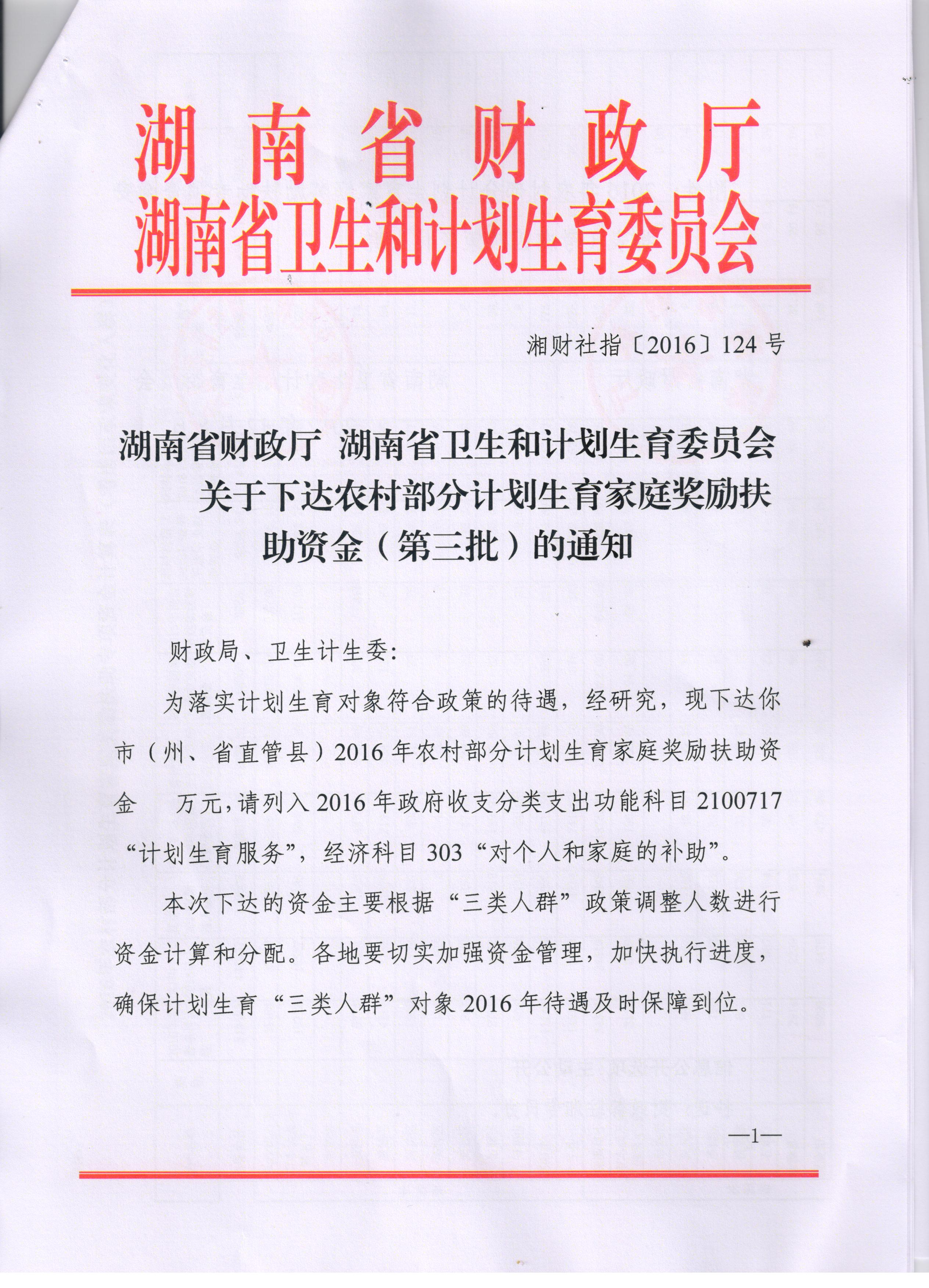 湖南省财政厅 湖南省卫生和计划生育委员会关于下达农村部分计划生育家庭奖励扶助资金(第三批)的通知