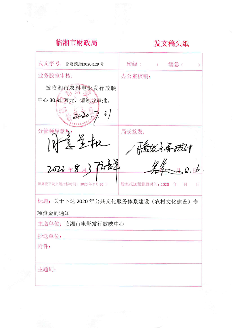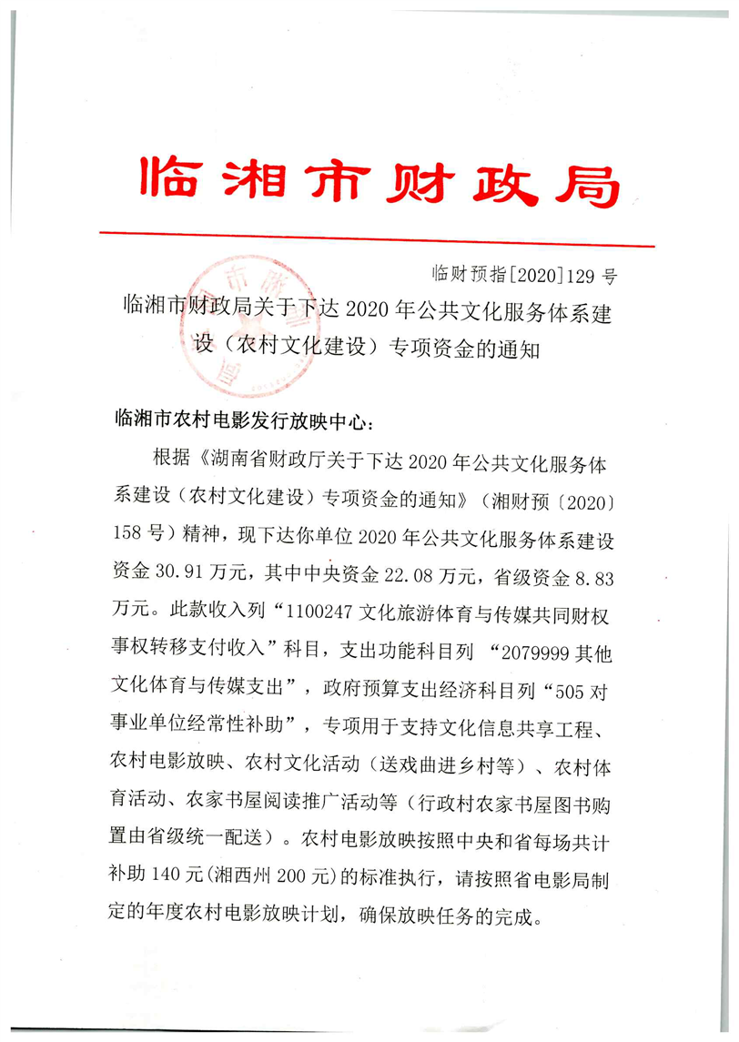 关于下达2020年公共文化服务体系建设(农村文化建设)专项资金的通知