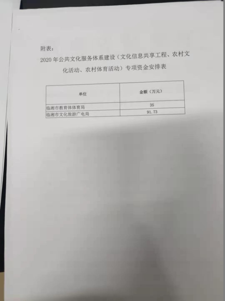 附件1:2020年公共文化服务体系建设(农村文化建设--文化信息共享工程、农村文化活动(送戏曲进乡村等)、农村体育活动、农家书屋阅读推广活动等)专项资金安排表(临湘市).xlsx