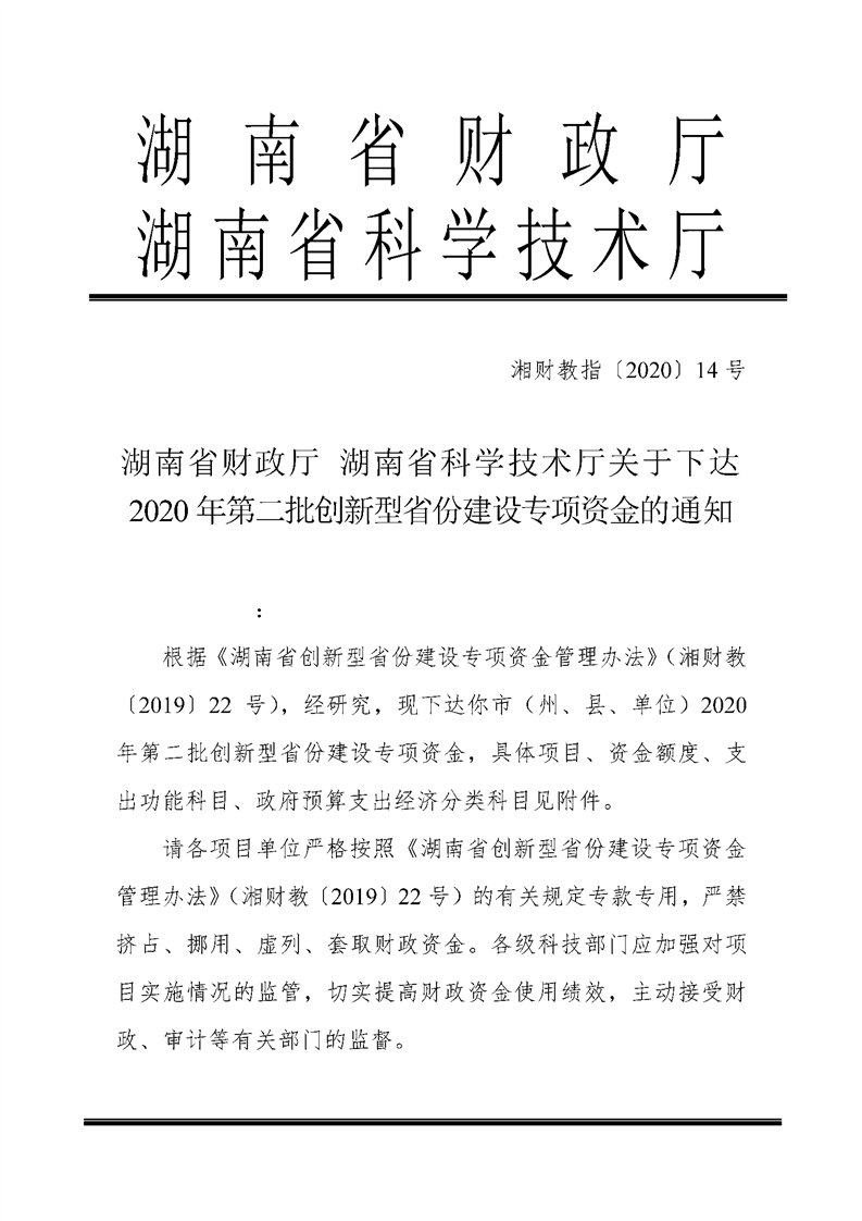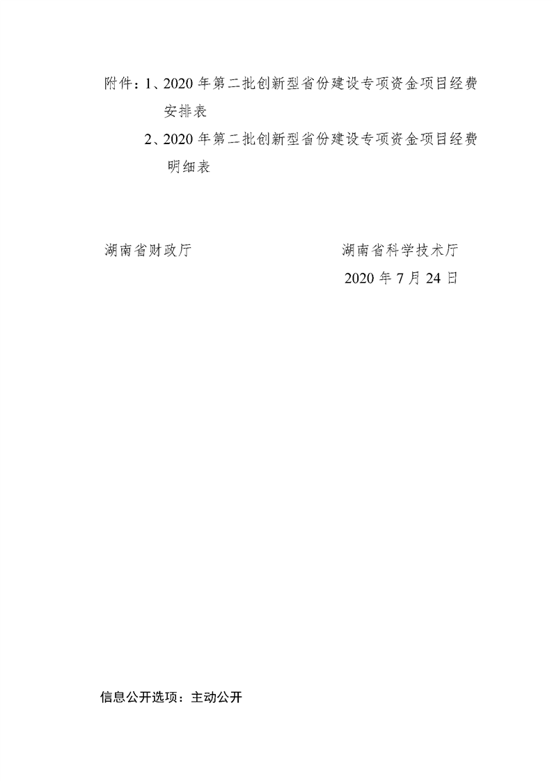 附件1:2020年第二批创新型省份建设专项资金项目经费安排表(临湘市).xls