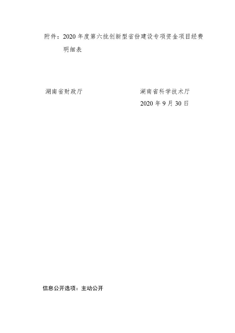 湘财教指〔2020〕57号 附件:2020年度第六批创新型省份建设专项资金项目经费明细表.xls