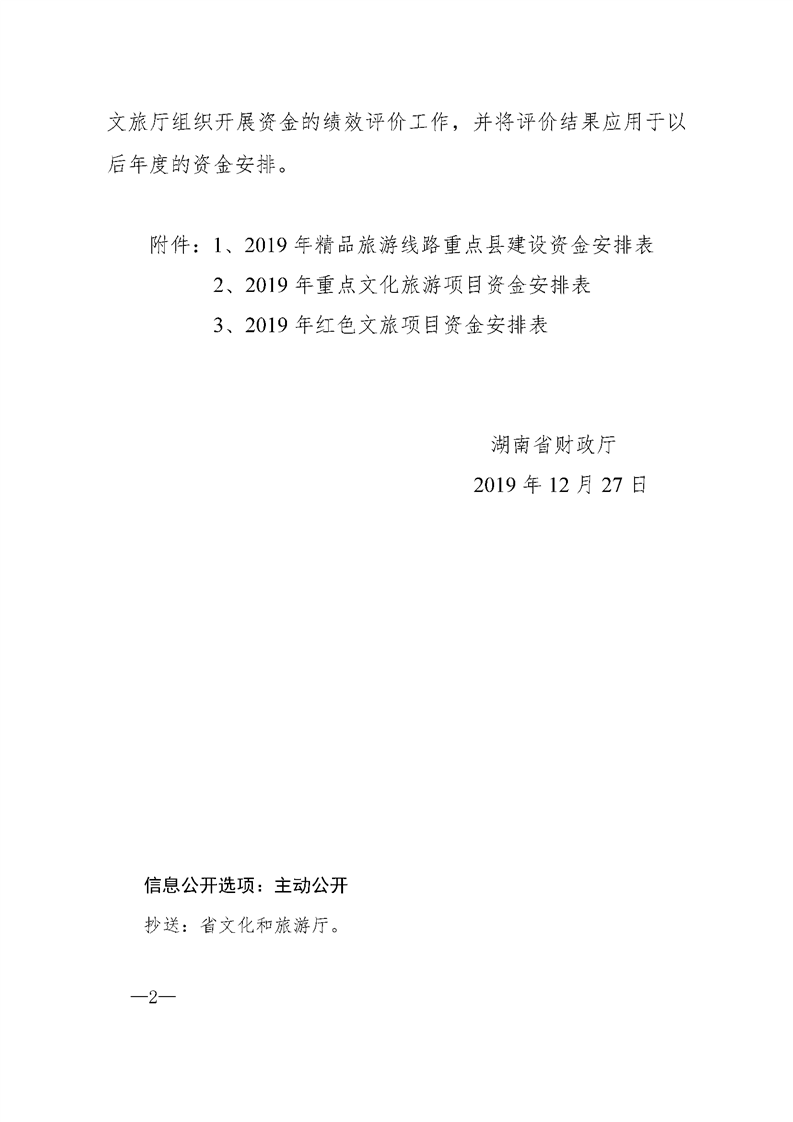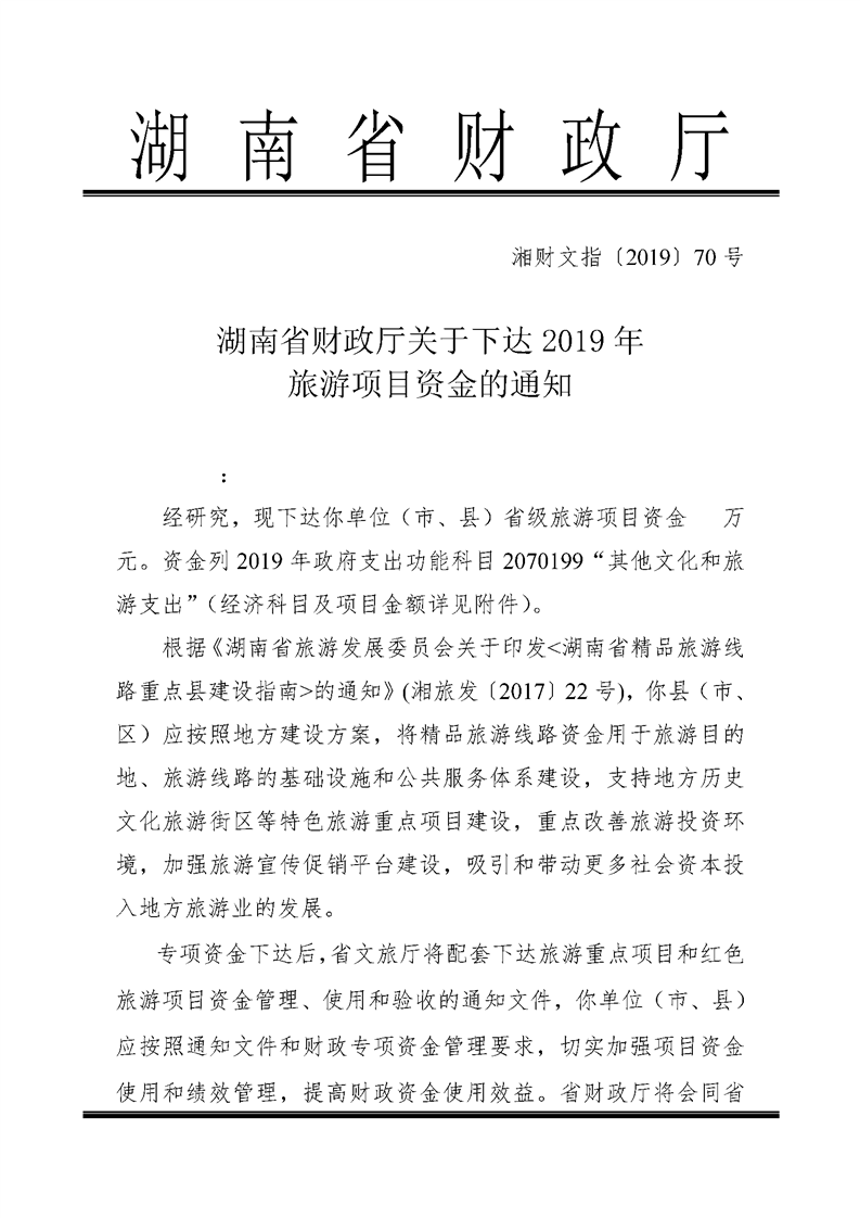 湖南省财政厅关于下达2019年旅游项目资金的通知