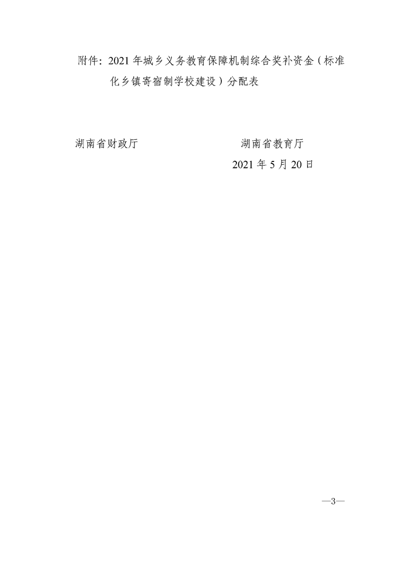 关于下达2021年城乡义务教育经费保障机制改革综合奖补资金(标准化乡镇寄宿制学校建设)的通知