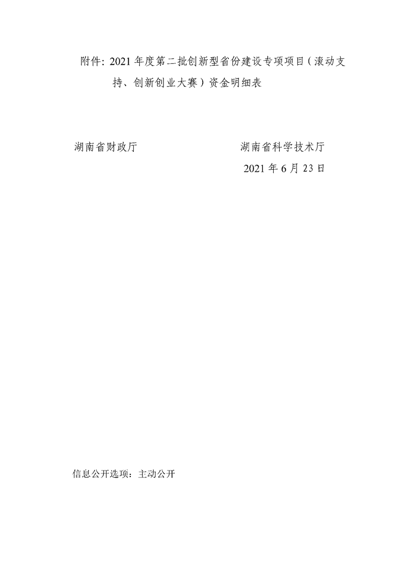 附件 2021年度第二批创新型省份建设专项项目(滚动支持、创新创业大赛)资金明细表-市州(临湘市)1.xlsx